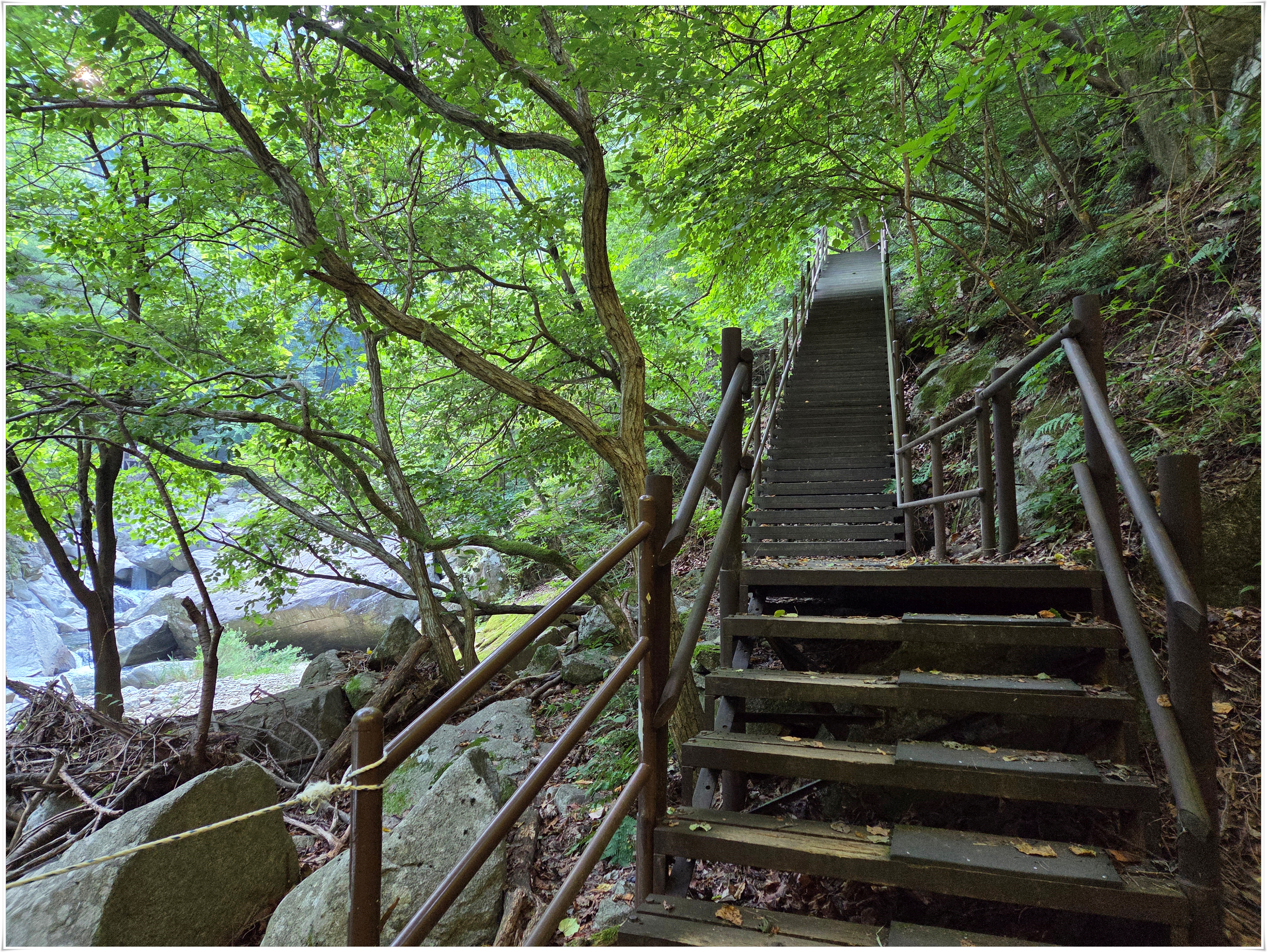 ▲비폭등에서 구룡폭포 제일 힘든 코스인 데크계단을 올라가야 한다