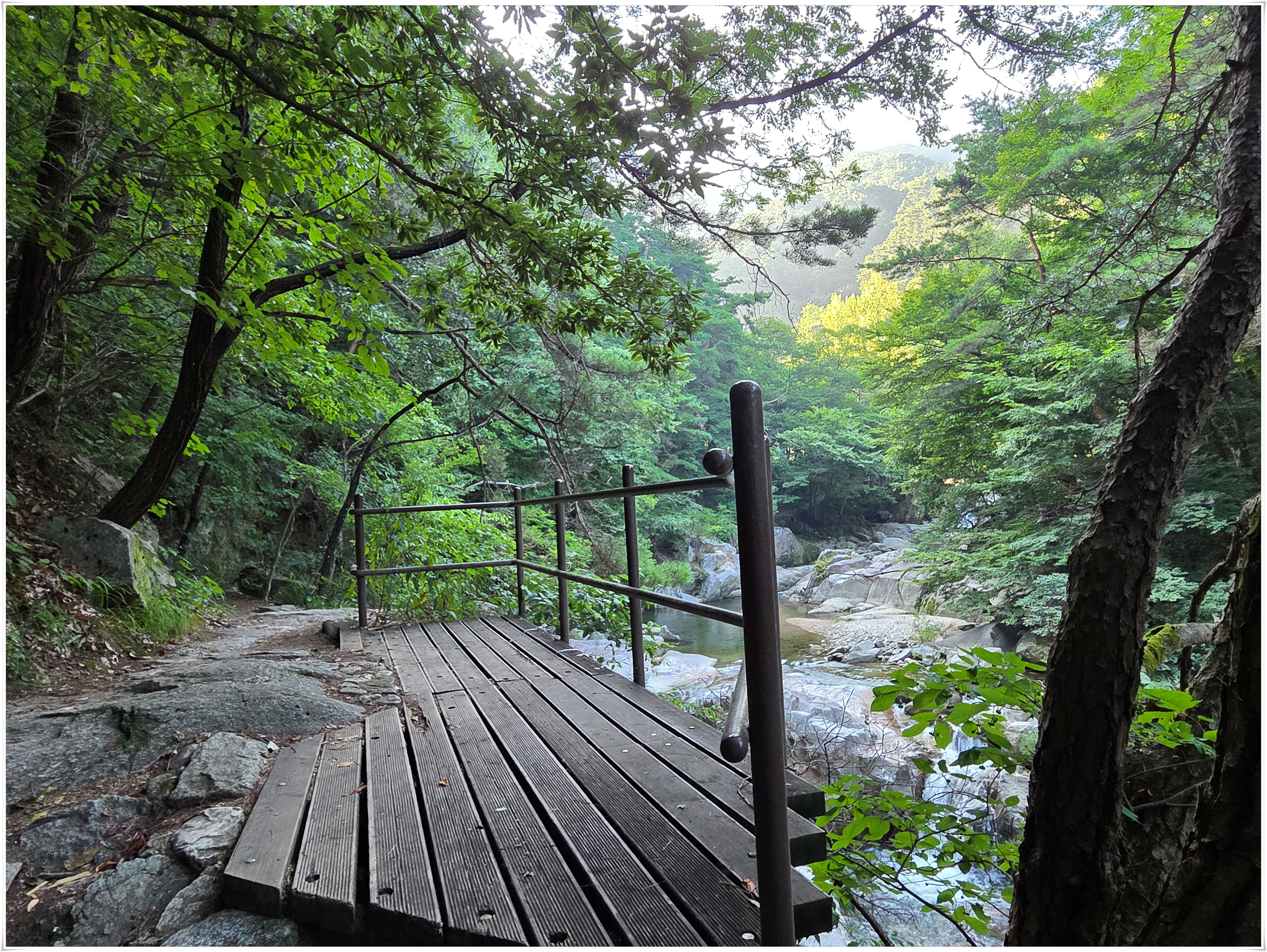구룡계곡 구간은 비폭등까지는 평탄한 등산로로 이루어져 있고 비폭등에서 구룡계곡 까지는 경사도가 있는 데크 계단을 올라야 하는 구간이다.