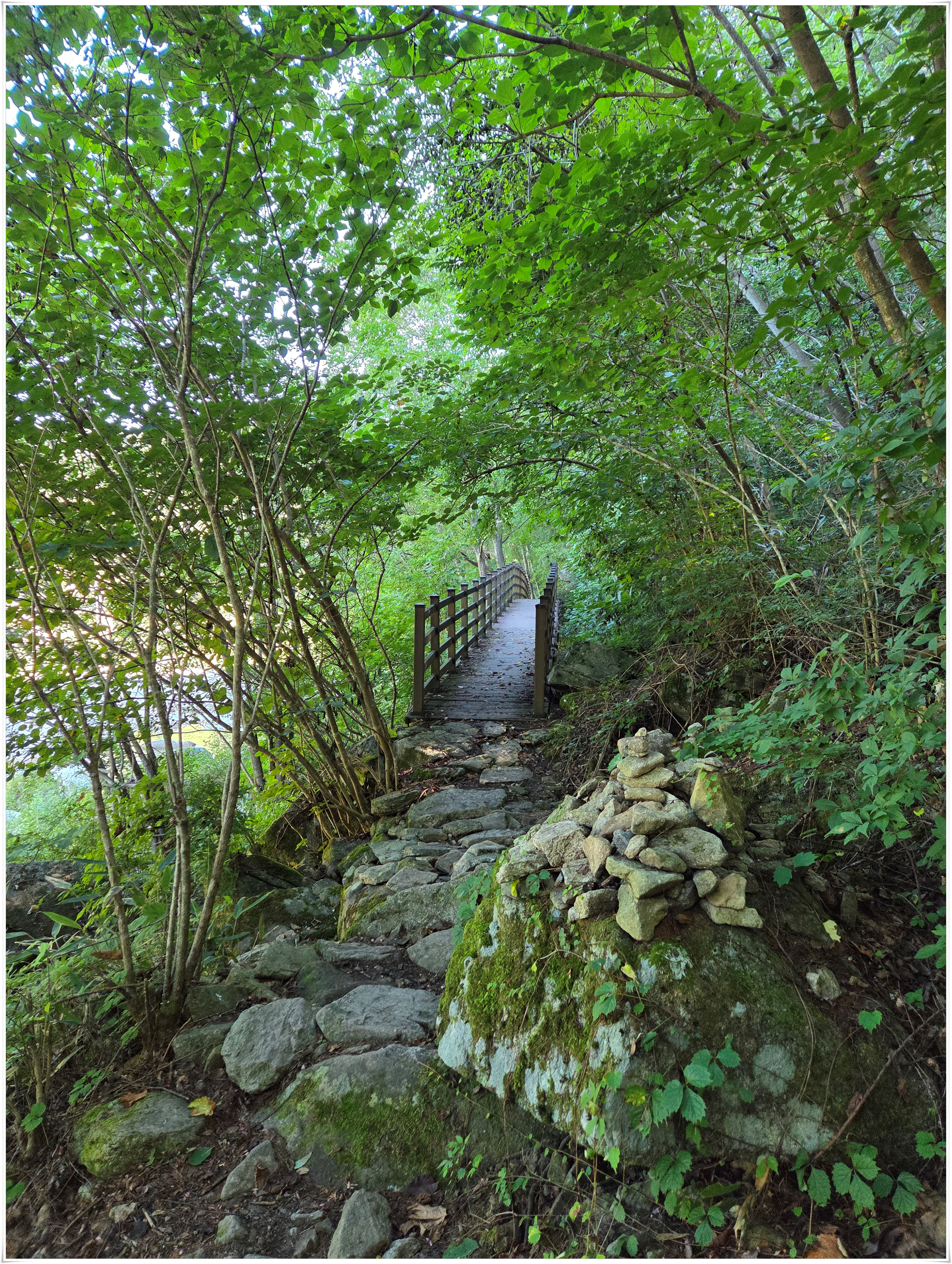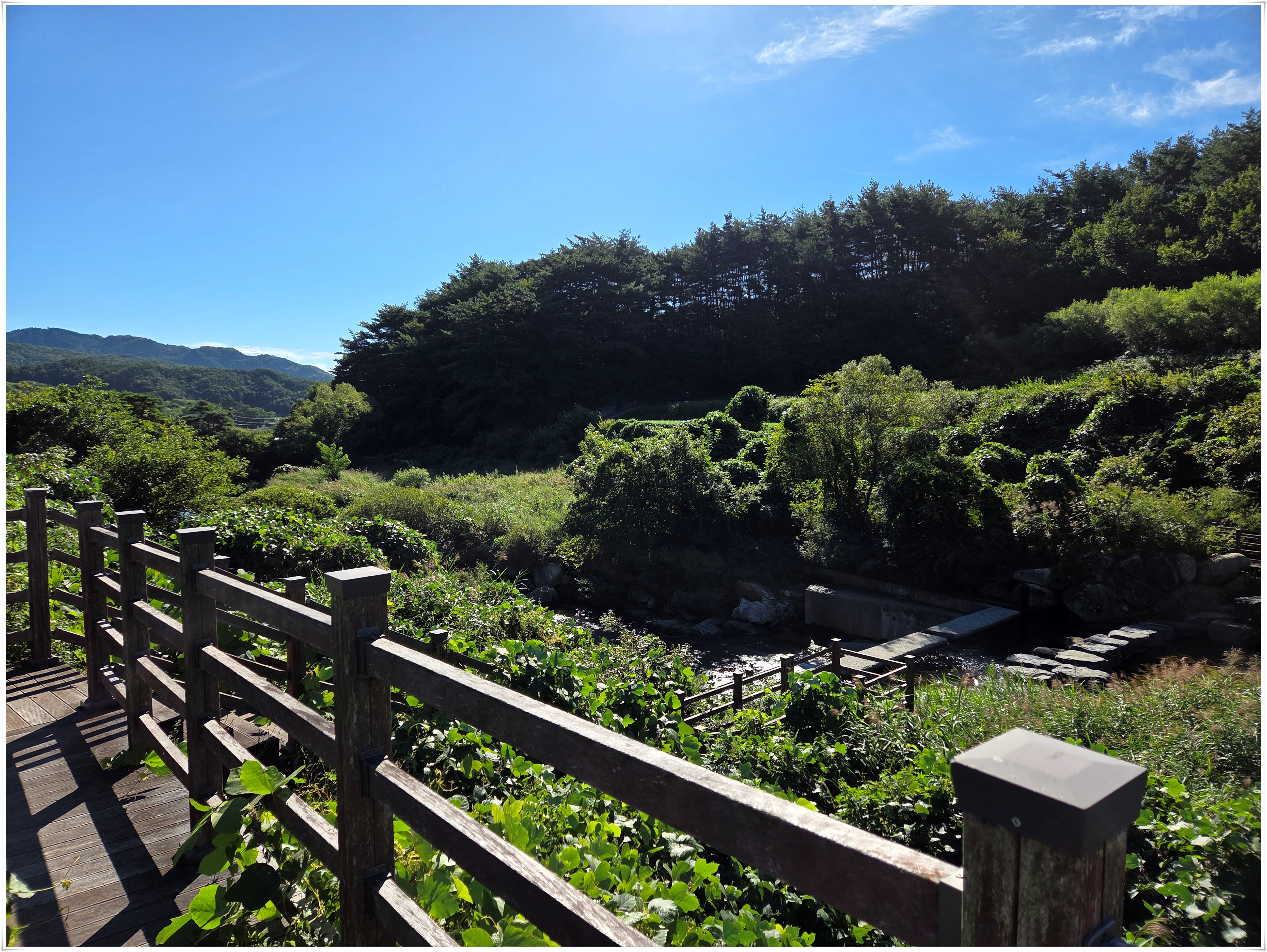 ▲데크 계단을 내려가서 징금다리를 건너