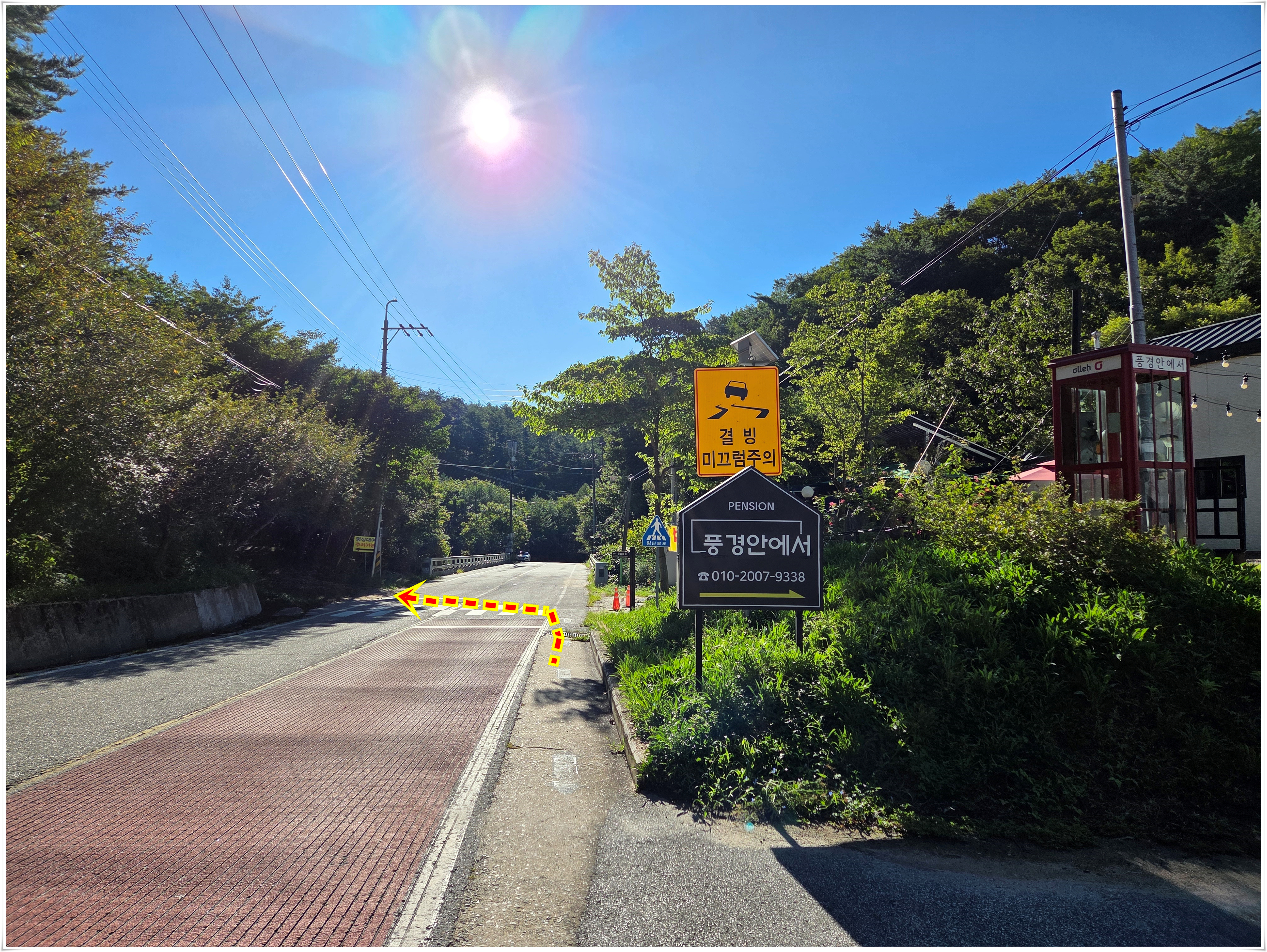 ▲풍경안에서 펜션 횡단보도를 건너서
