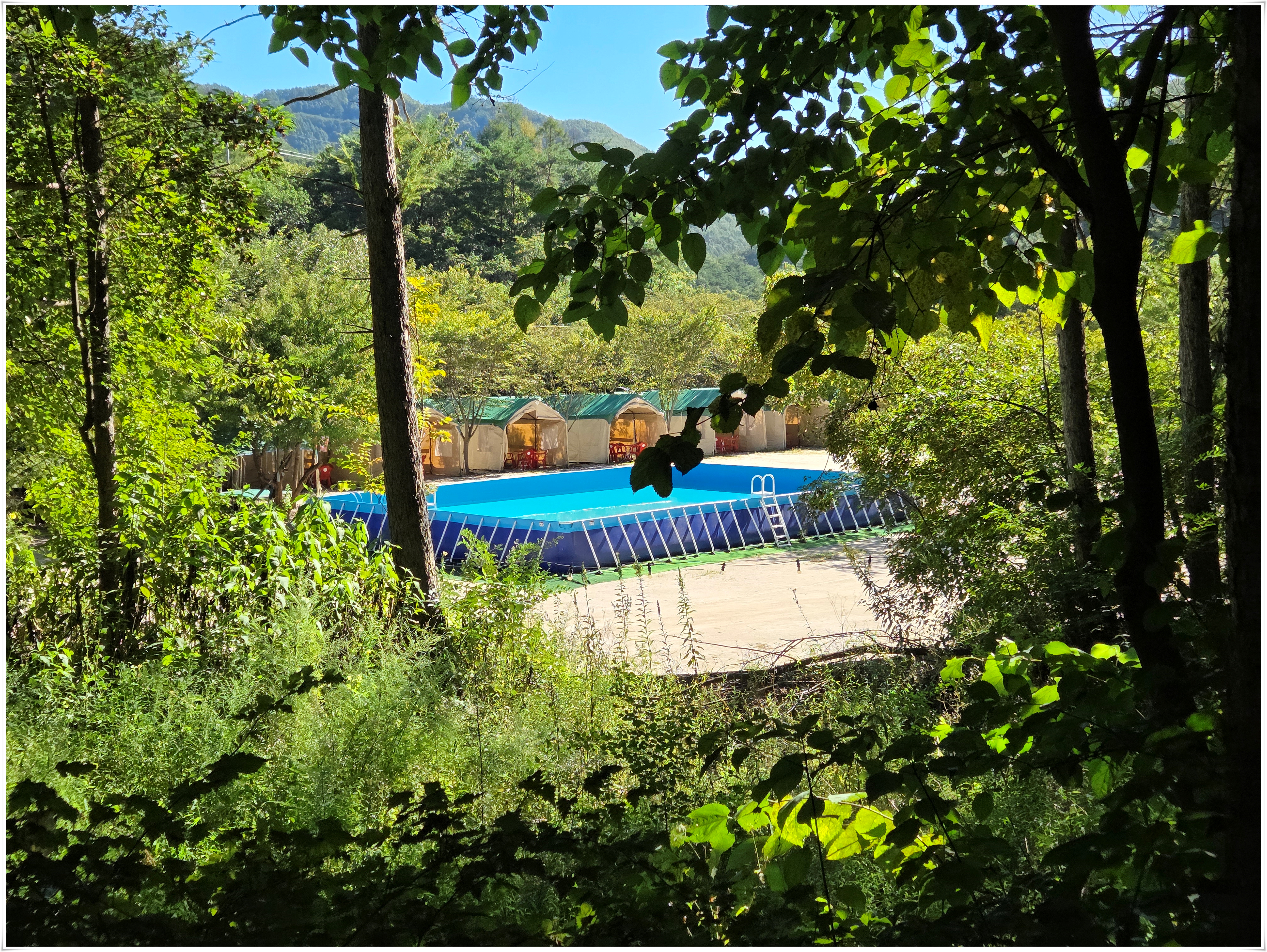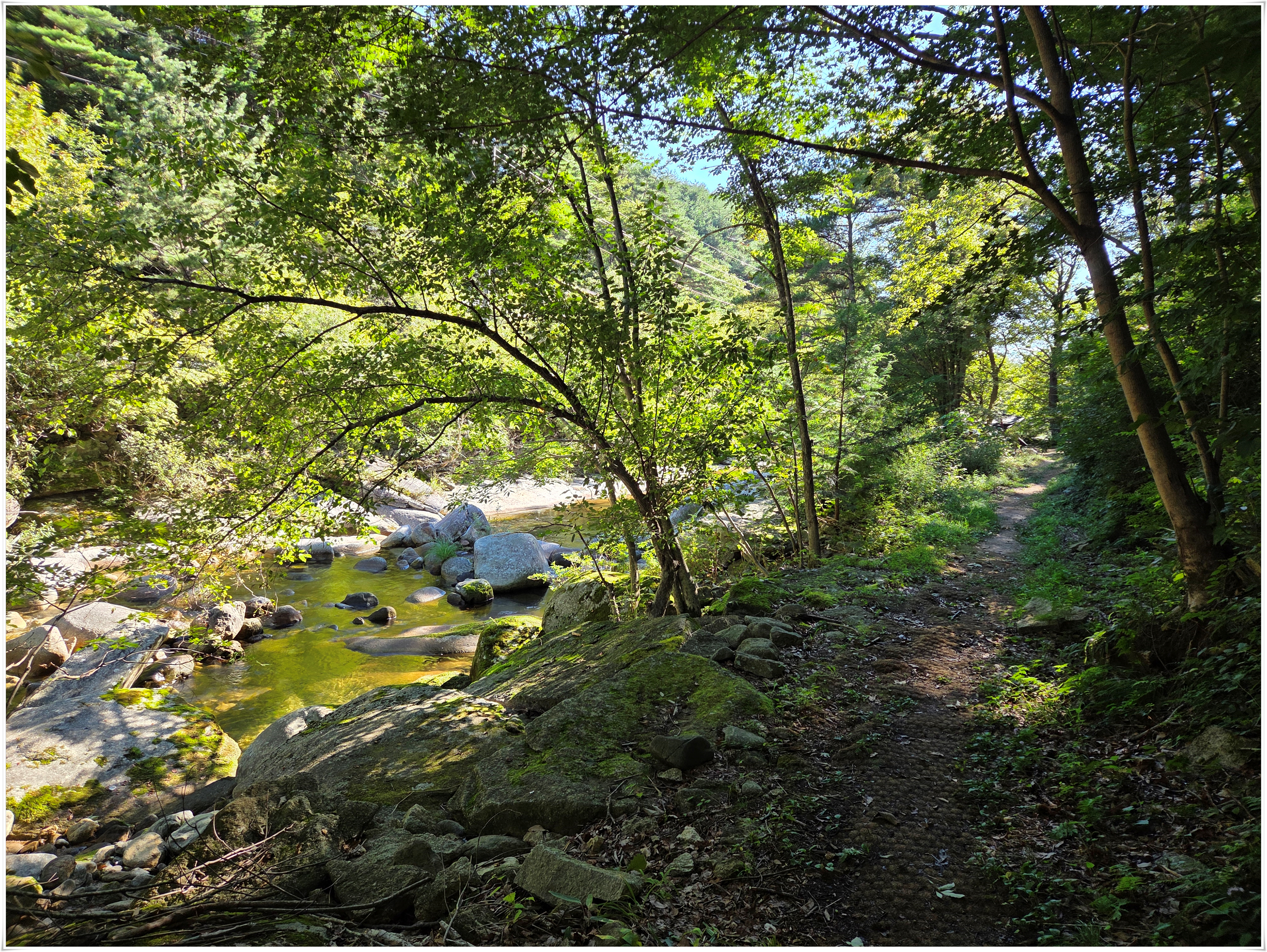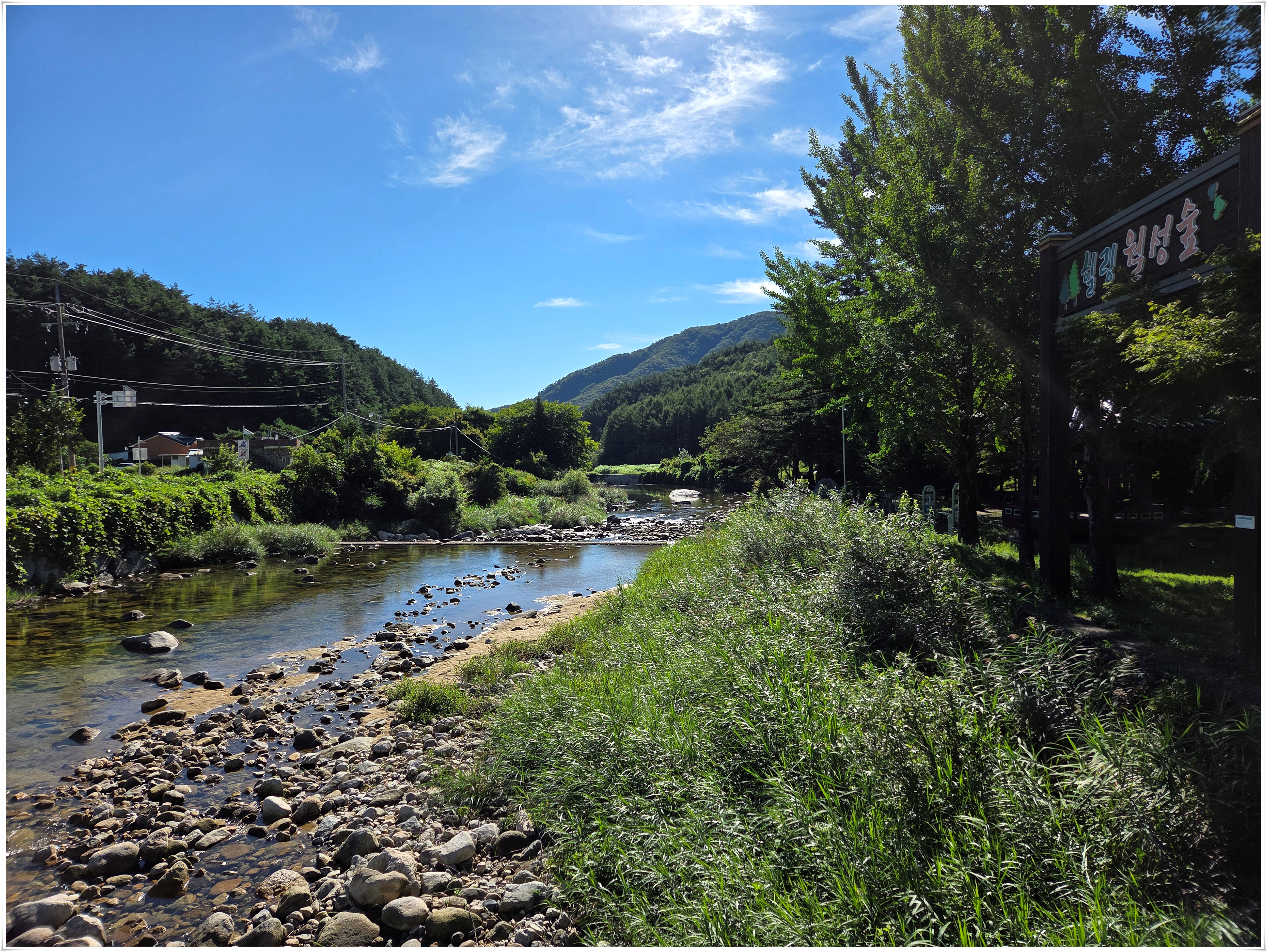 ▲사선대 이곳에서 물놀이 하였음, 서출동류물길트레킹코스에서 물놀이 하기 좋은 곳은 사유지라고 적혀 있고 하루 평상대여료을 50,000원을 받는 다고 한다. 이날은 대부분 오전에는 물놀이 하는 사람들이 없었고 오후에 보니 도로변에 많은 차들이 주차 되어 있었다. 여름철 마지막이라서 그런지 내가 물놀이한 사선대는 평상 대여료를 받는 사람이 안 보였다. 여름철 물놀이 하기 좋은 계곡에 불법적으로 평상을 만들어 대여료을 받아 문제가 많은데, 계곡은 국유지이고, 또 사유지라도 계곡은 공공재로 돈을 받을 수 없음에도 불법 관행이 고쳐지지 않고 계속되고 있다.