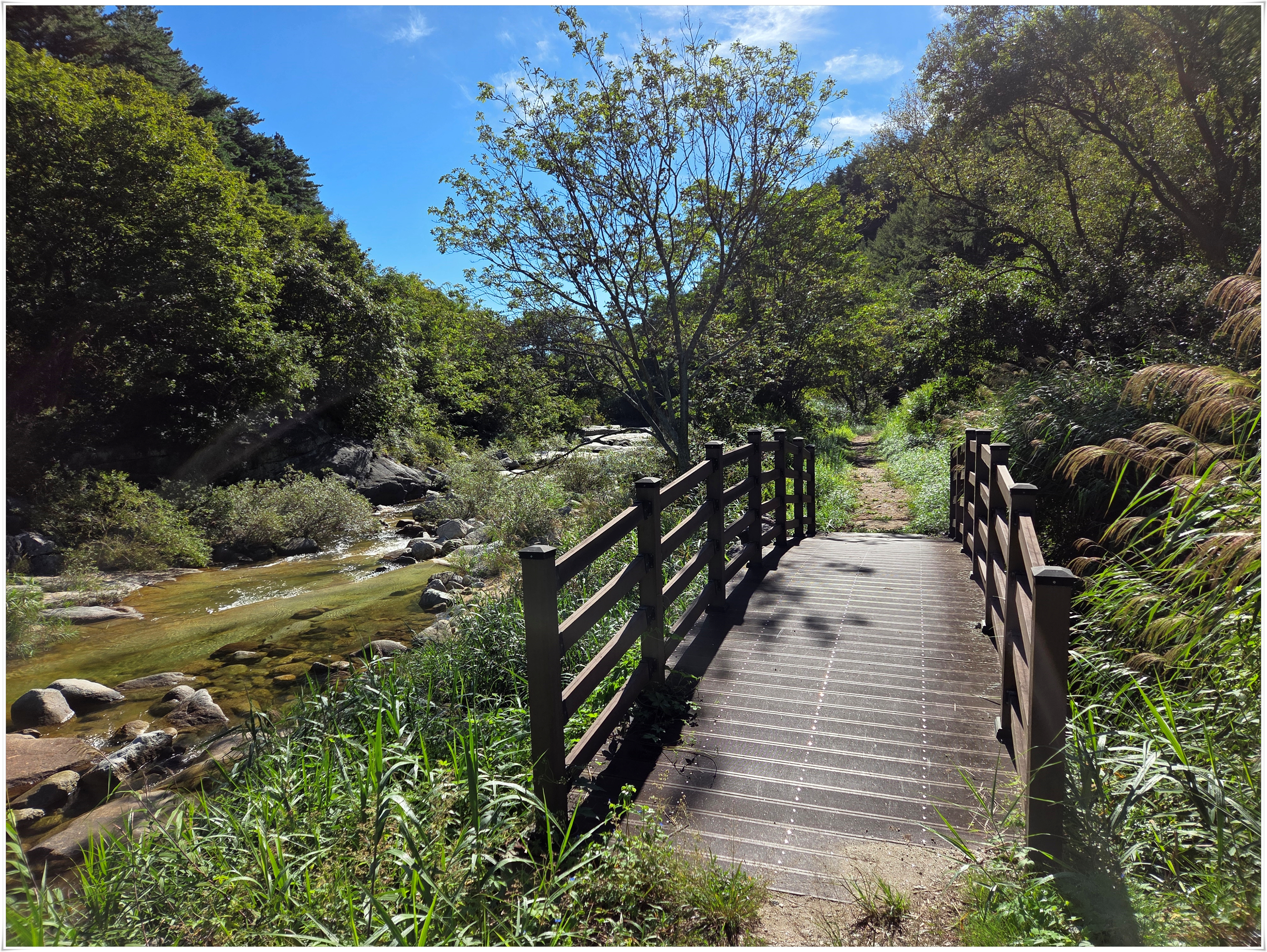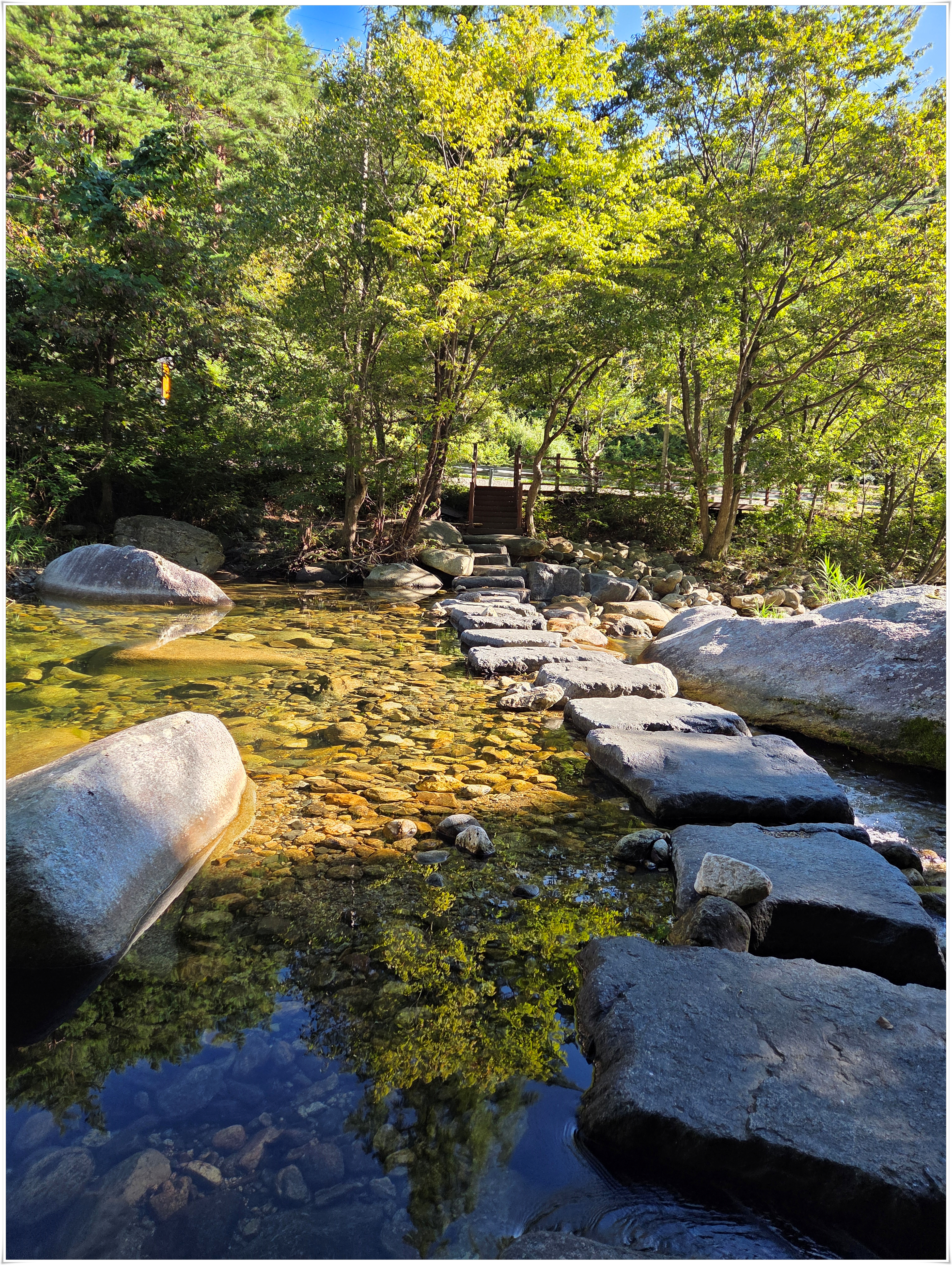 ▲계곡 징금다리를 건너고
