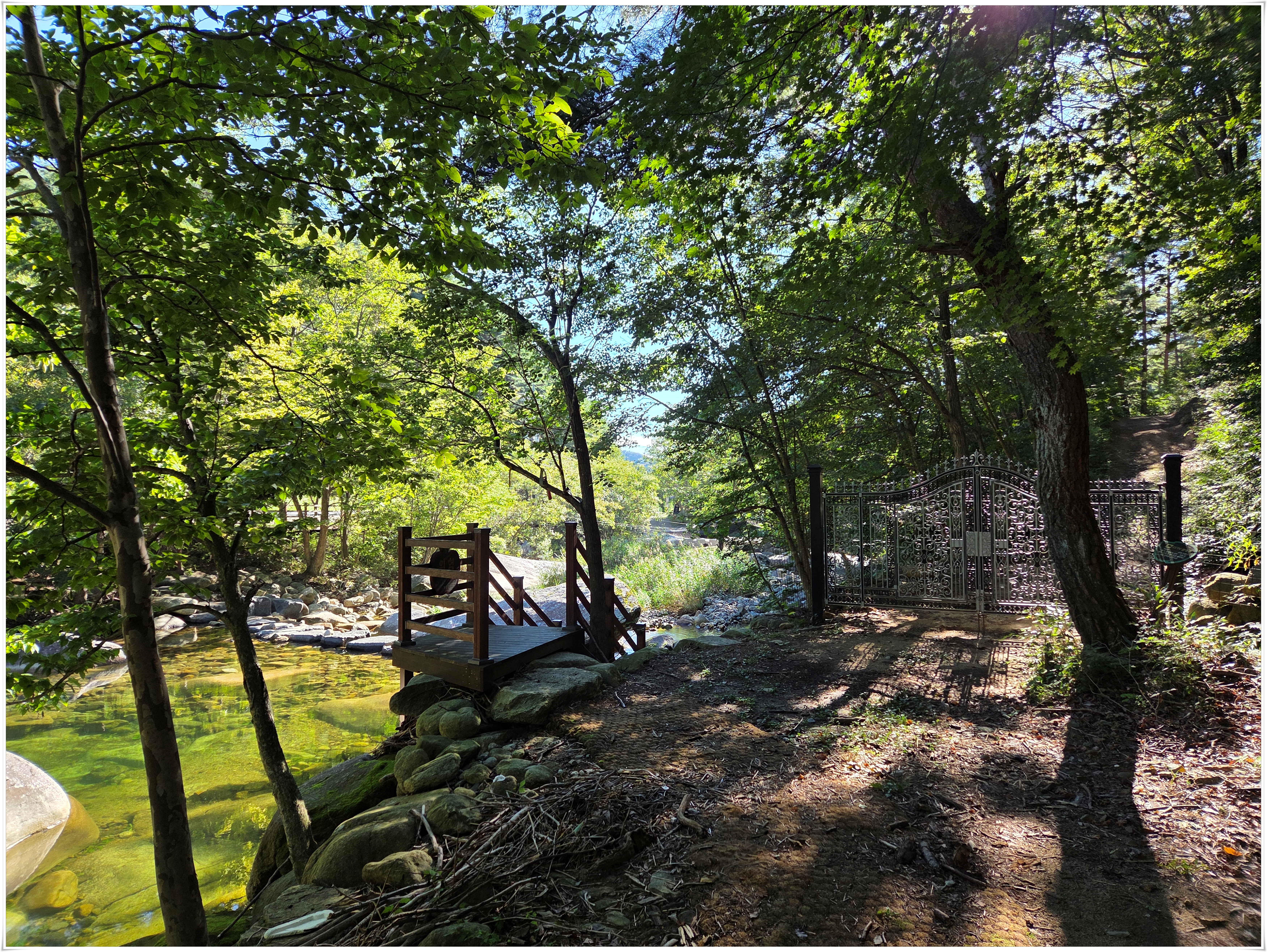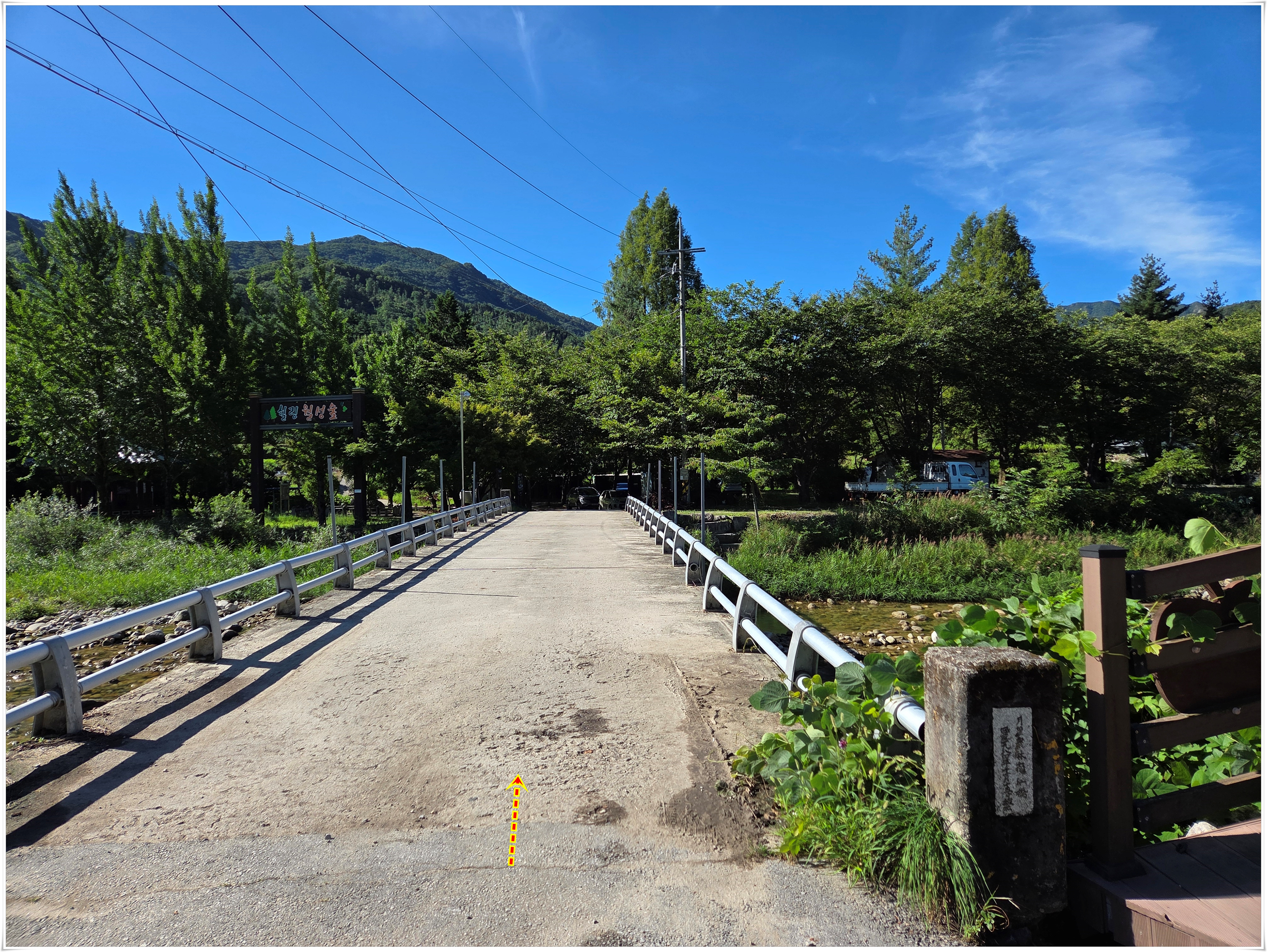 ▲계곡 징금다리를 건너면 산수교 종점이다. 산수교: 경남 거창군 북상면 산수리 산 53