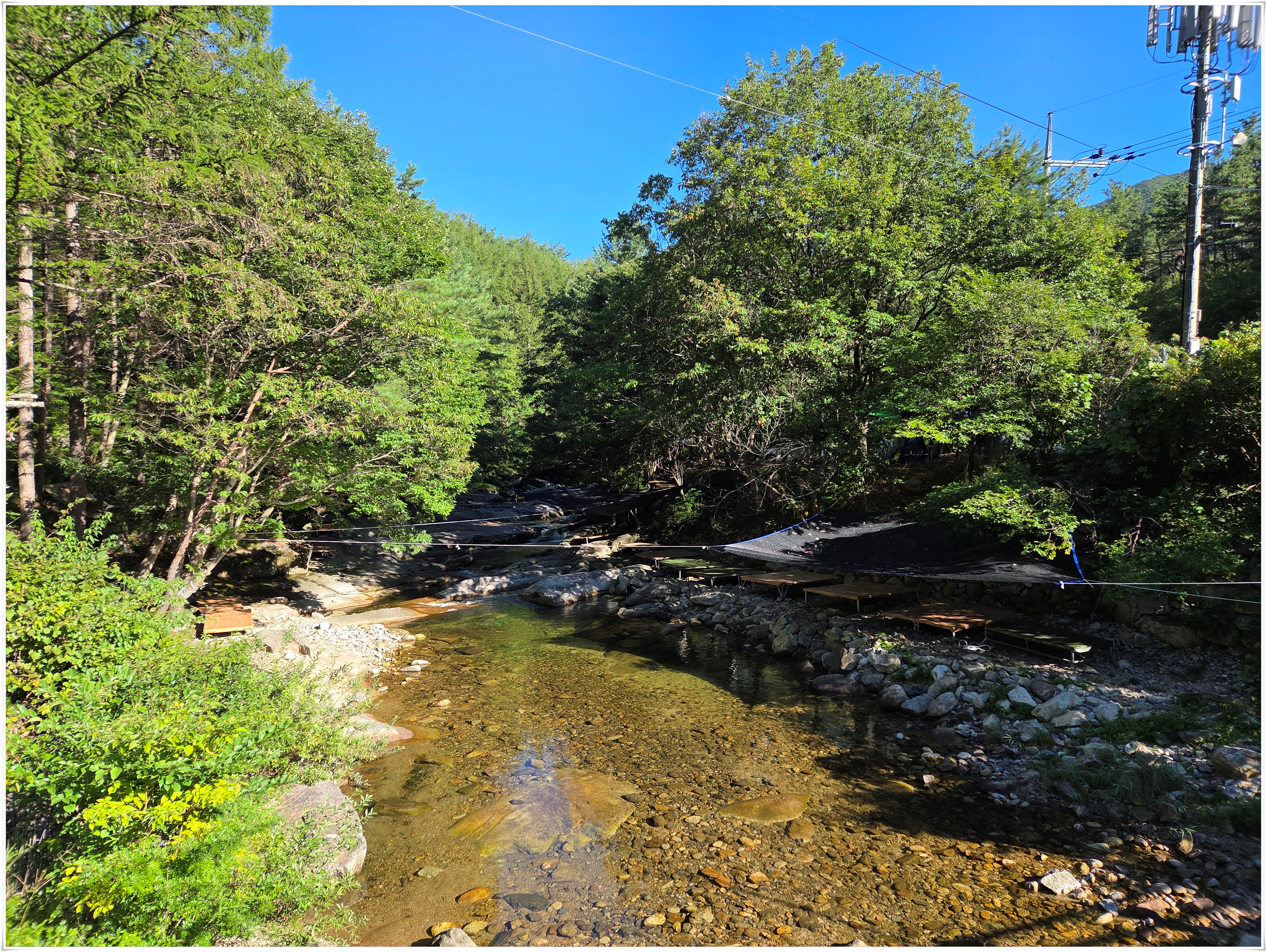 ▲계곡 물놀이 좋은 장소엔 유료 평상이 있다