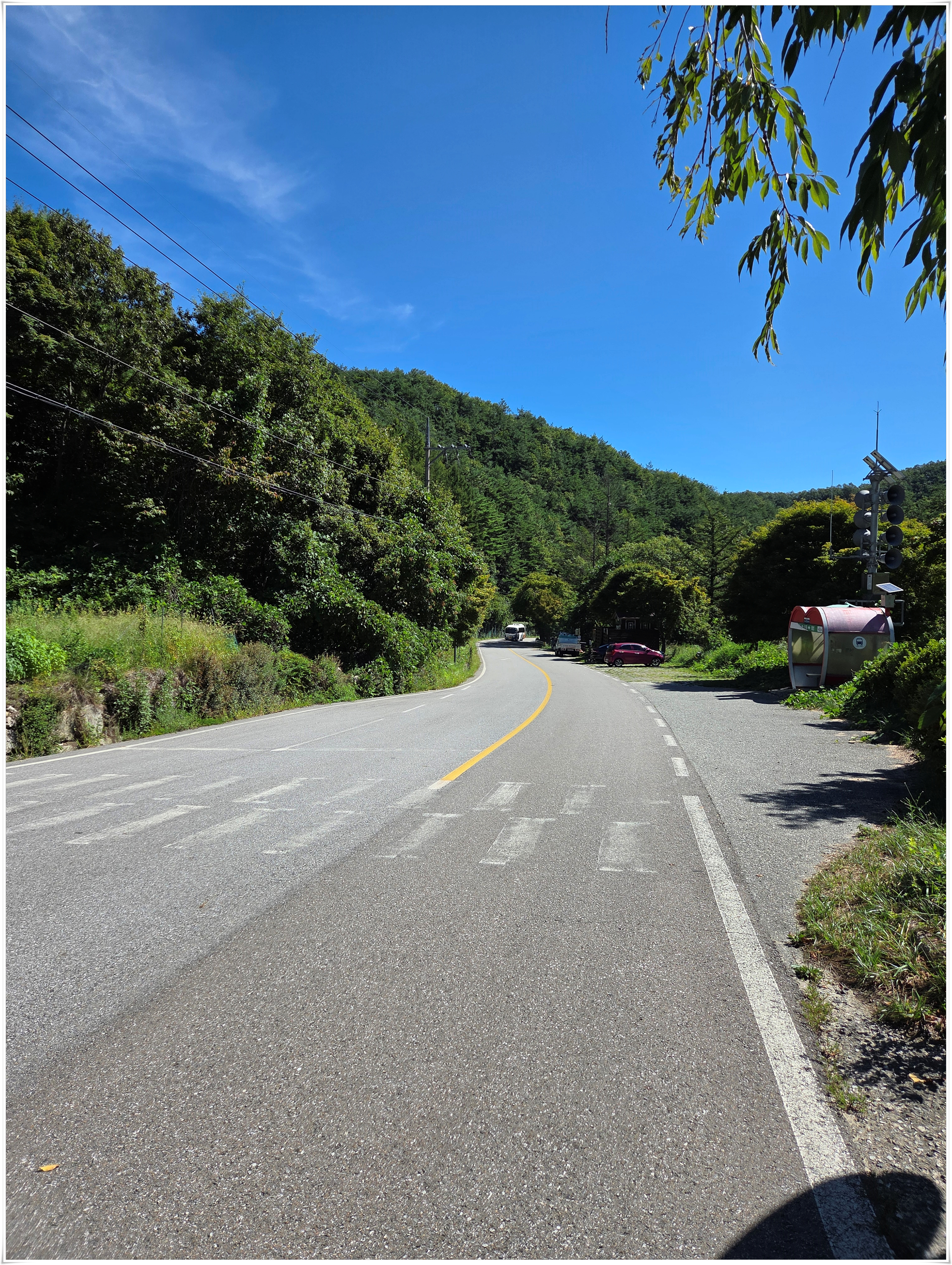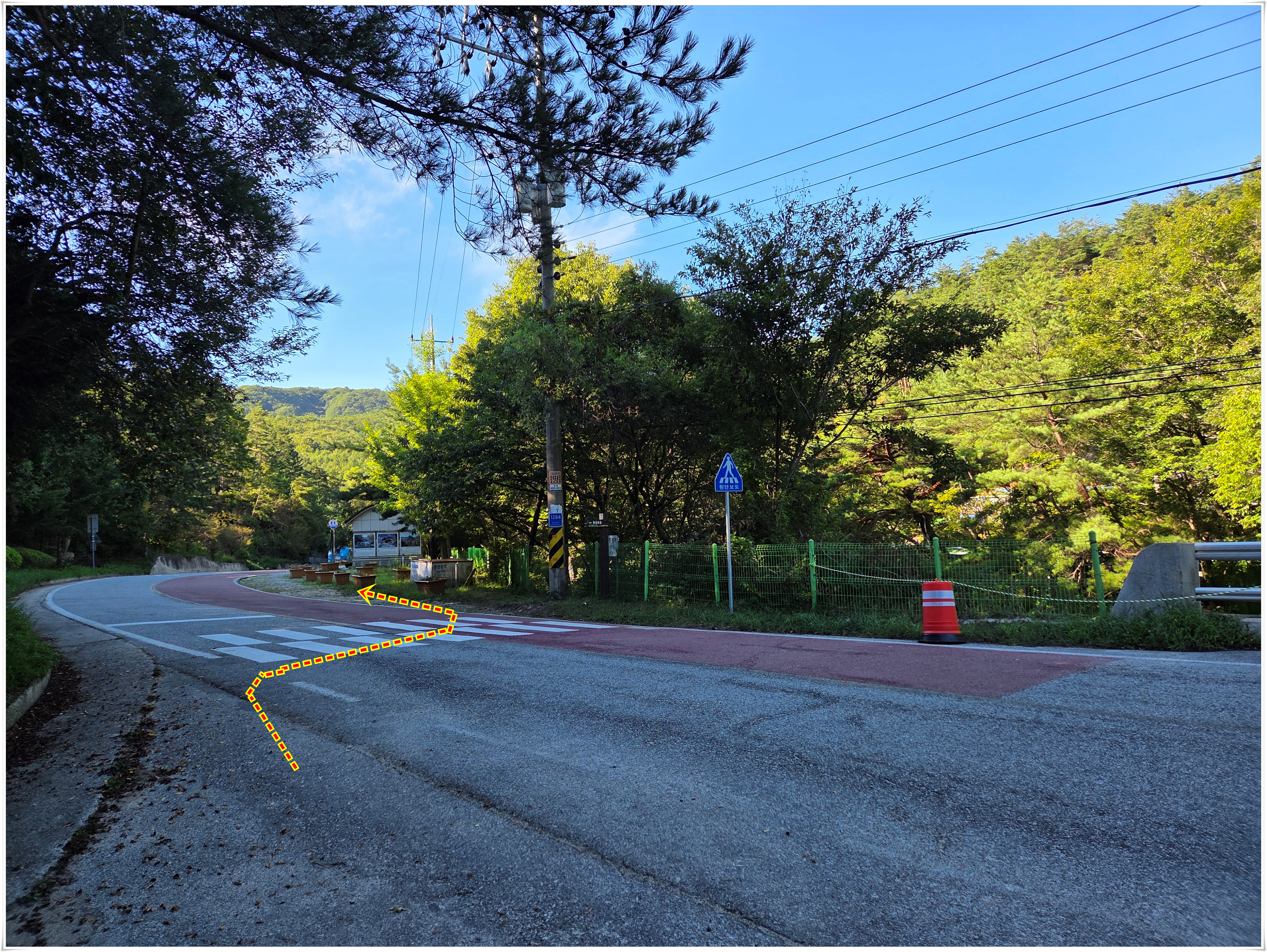 ▲공용주차장에서 다리를 건너 도로변을 따라 내려 간다