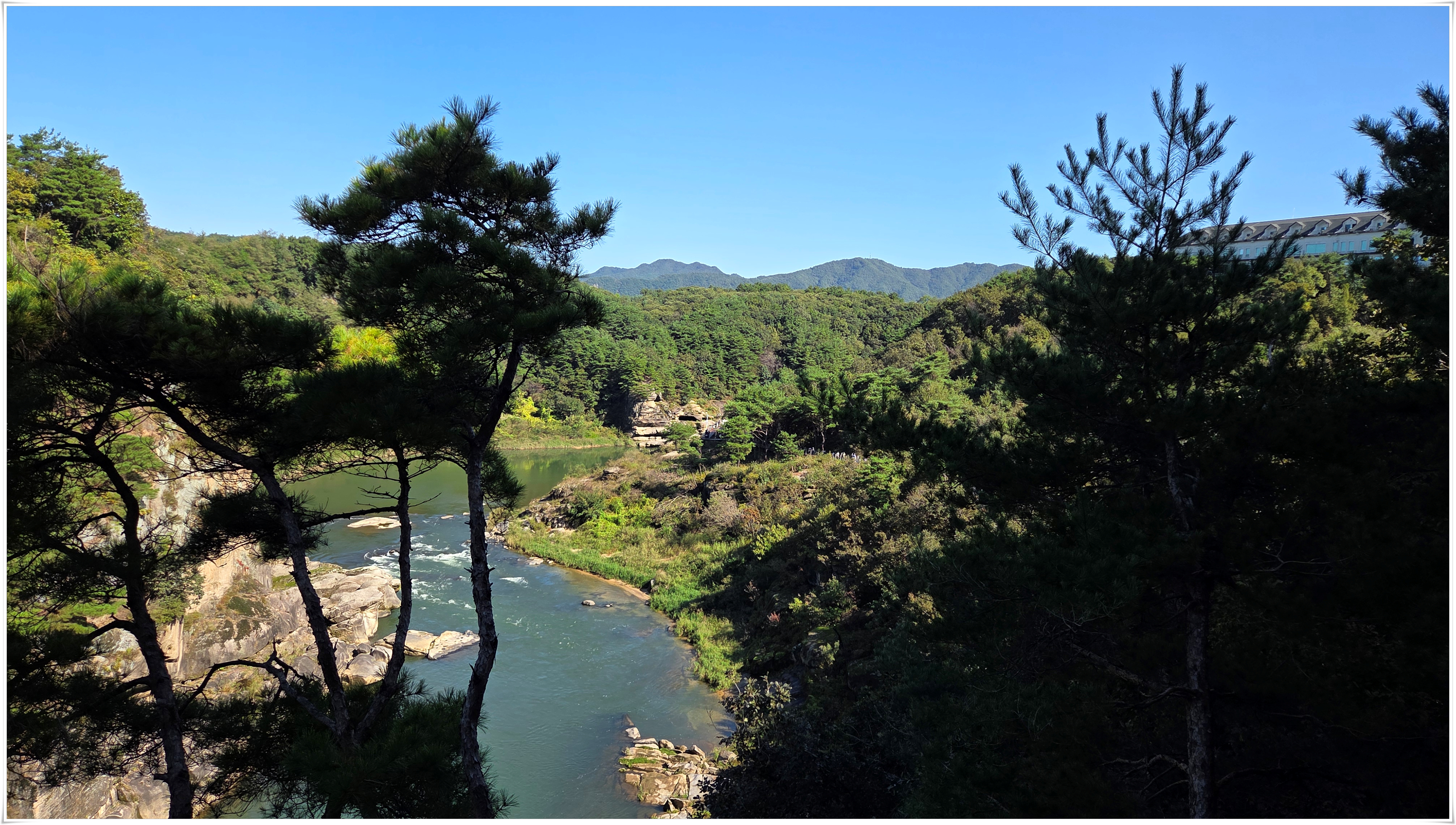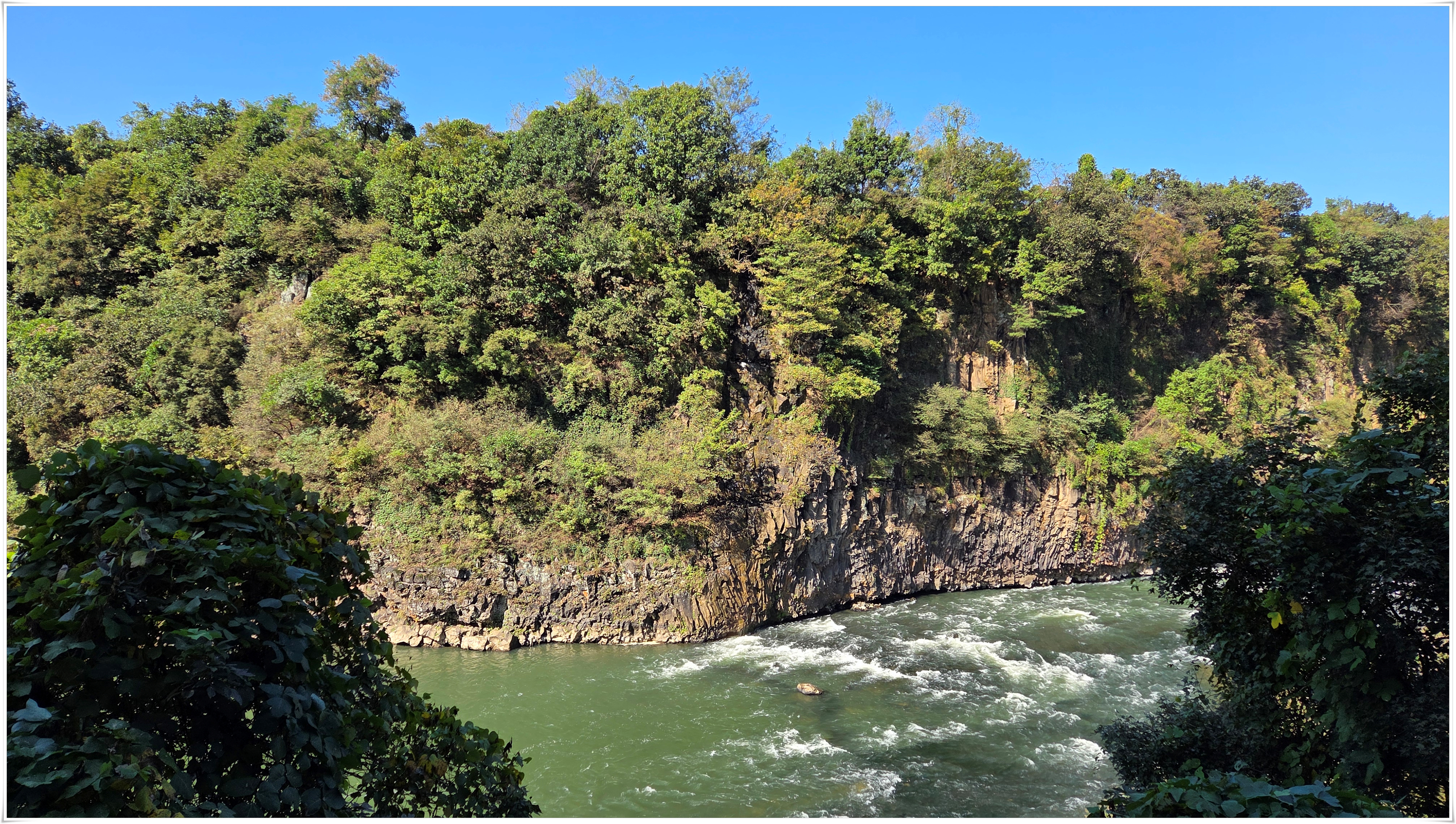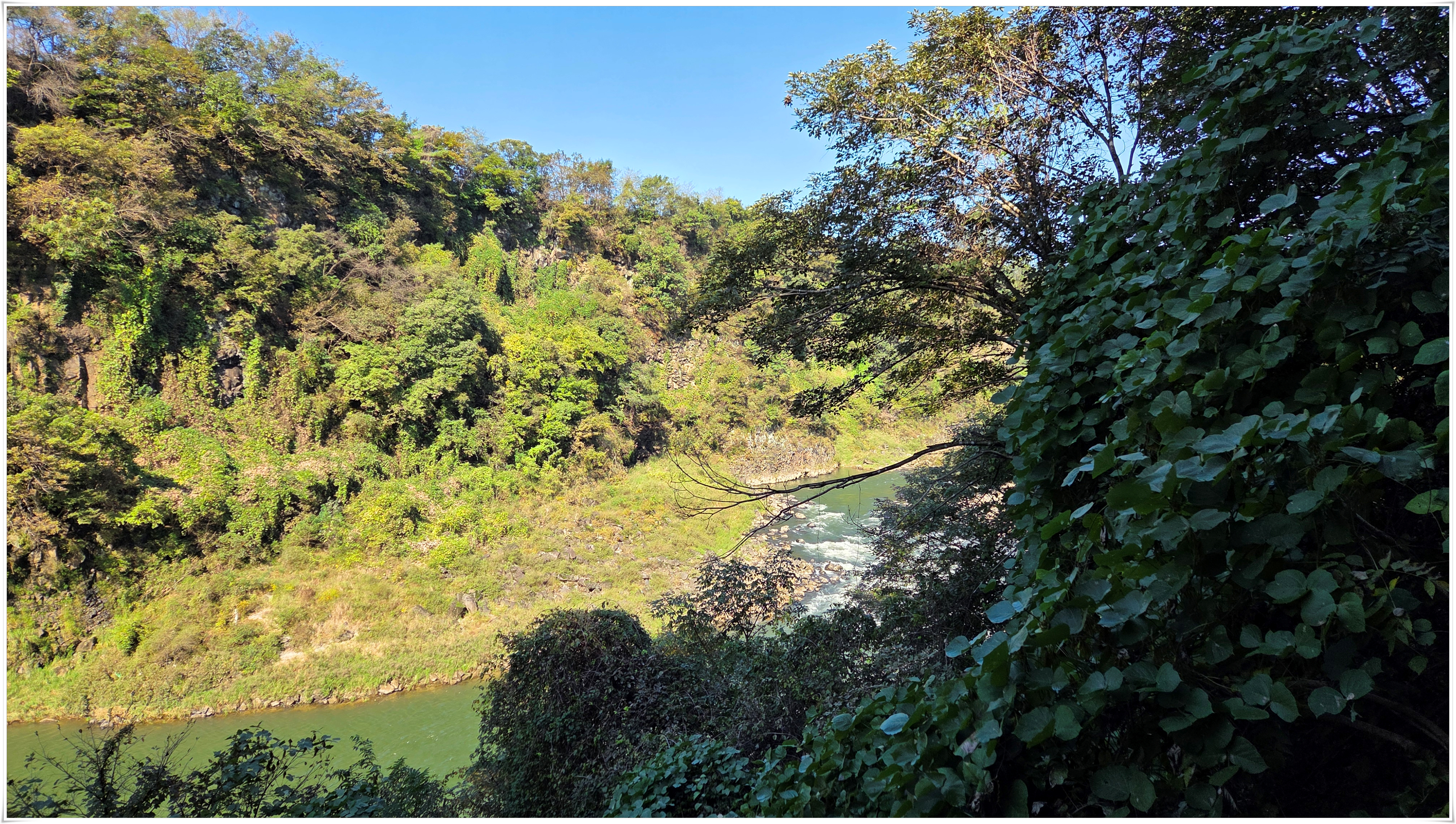 ▲어제 비가 내려서인지 강물 흐르는 소리가 우렁차게 들리고