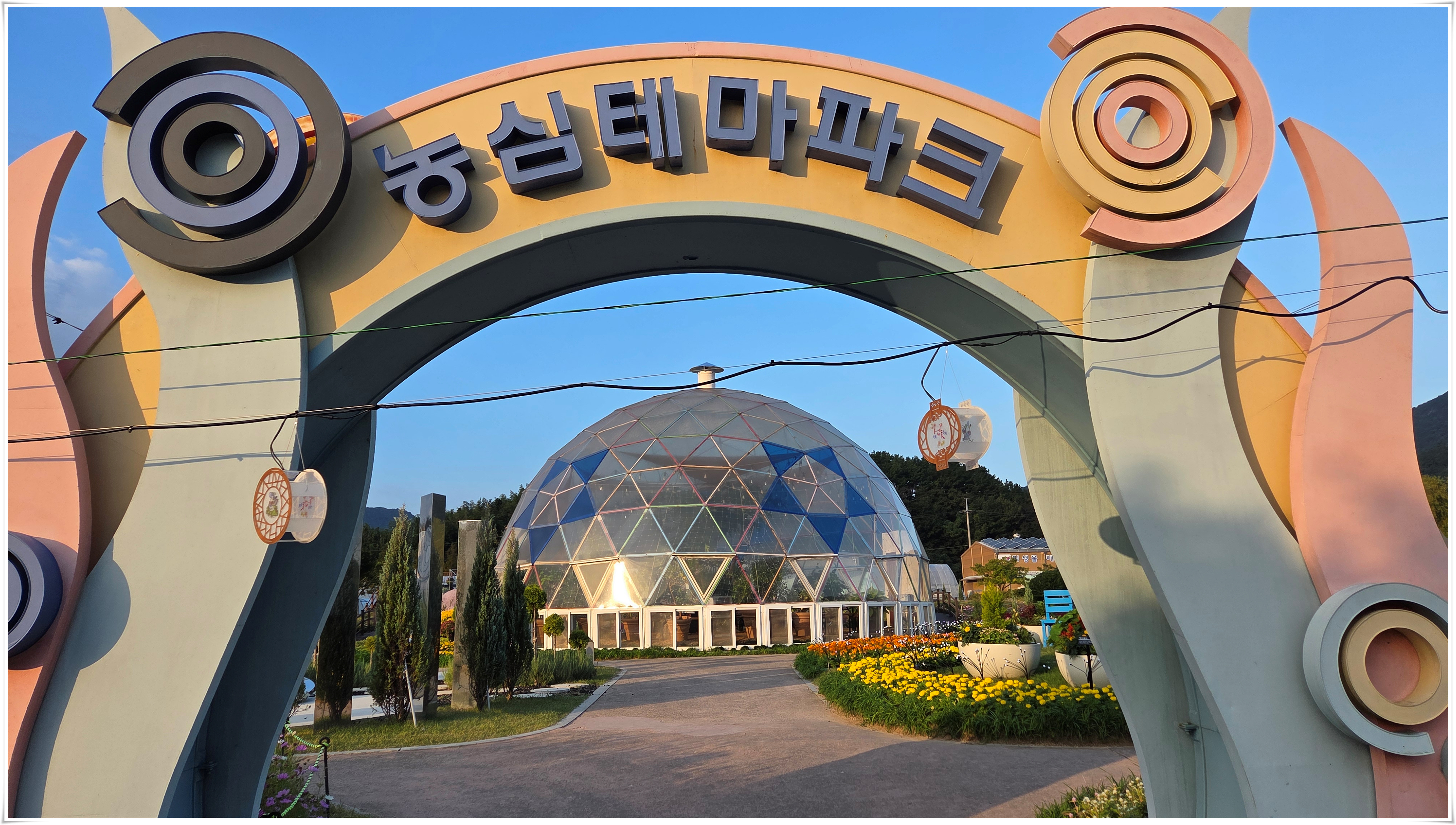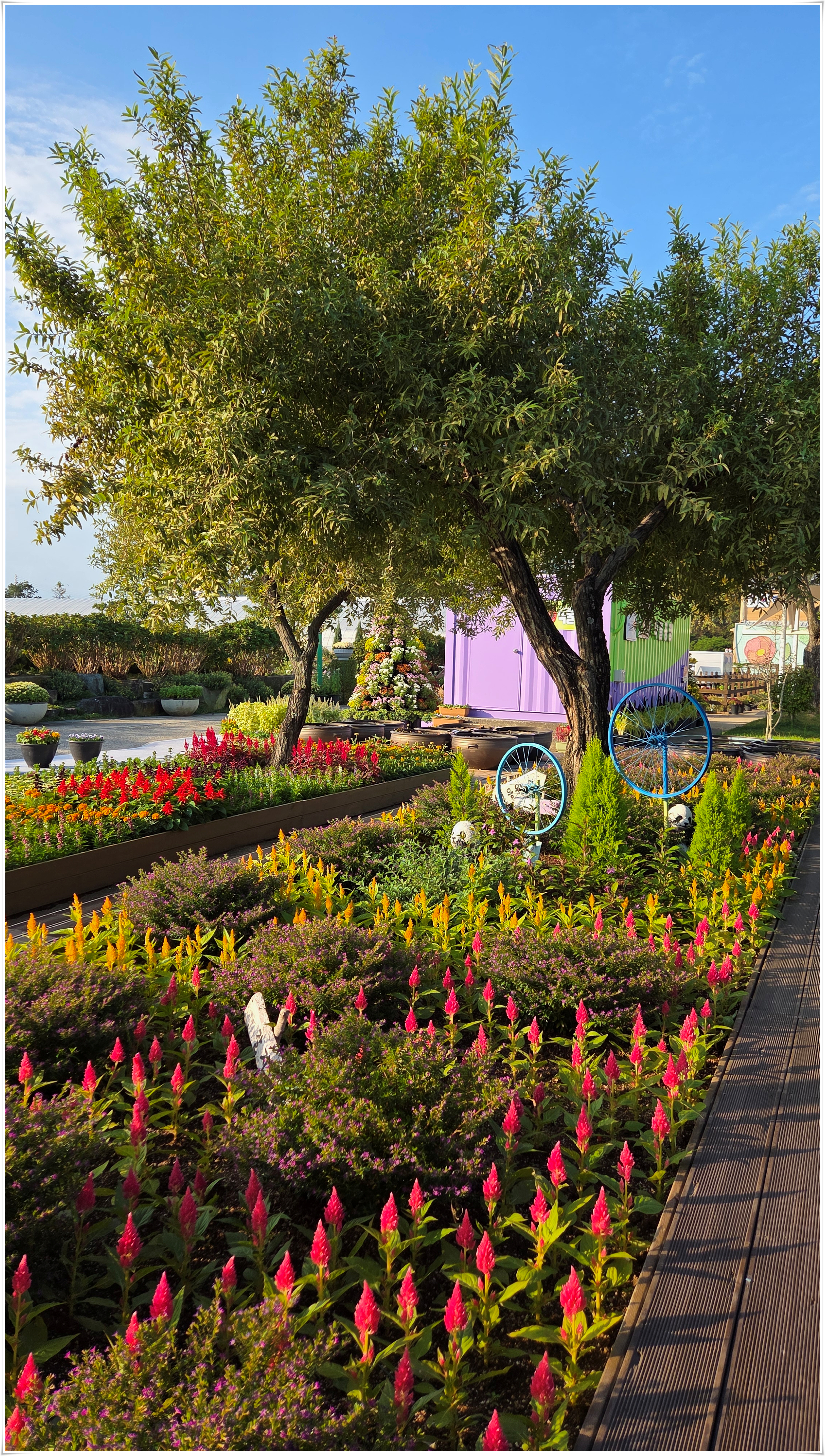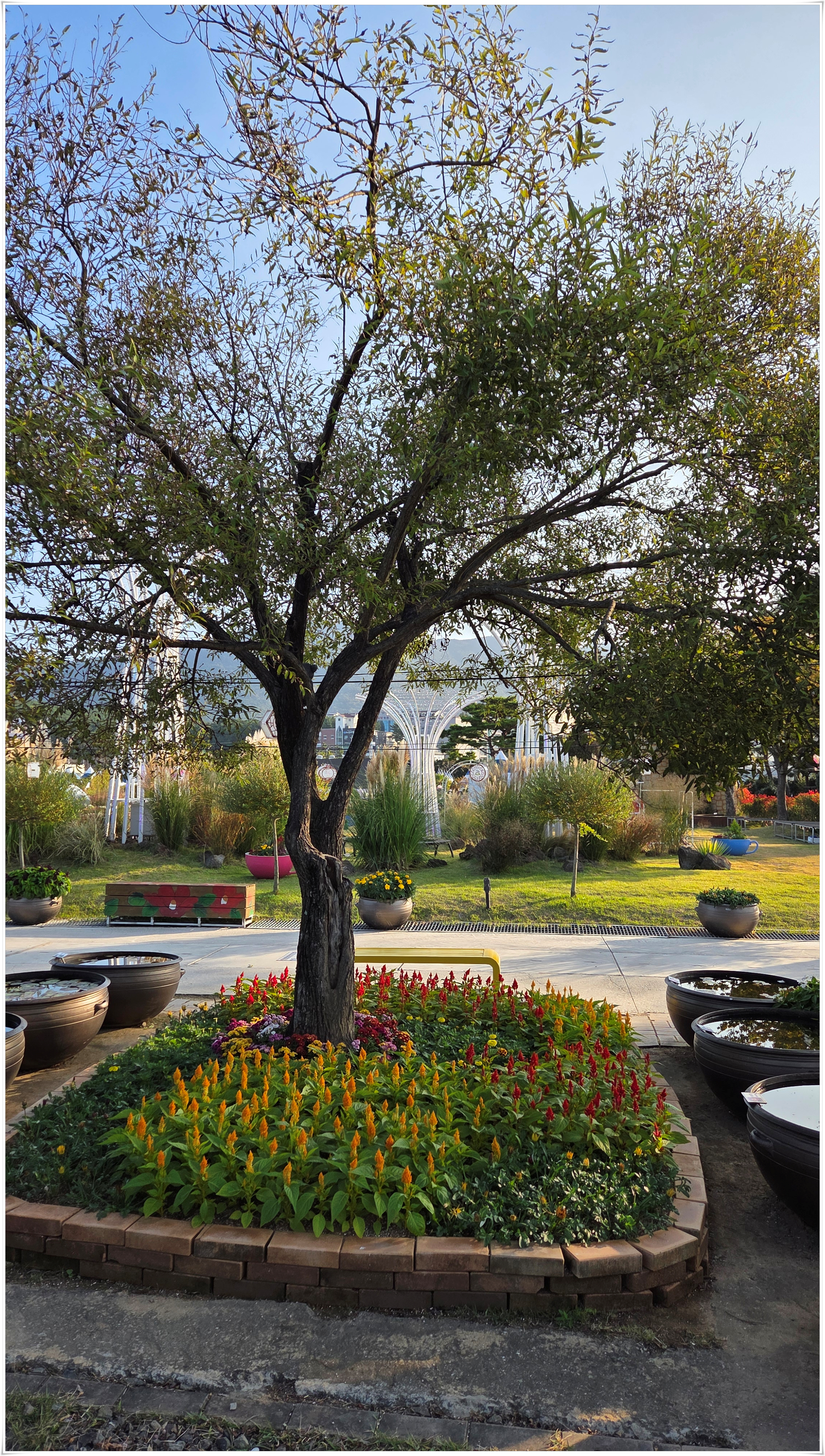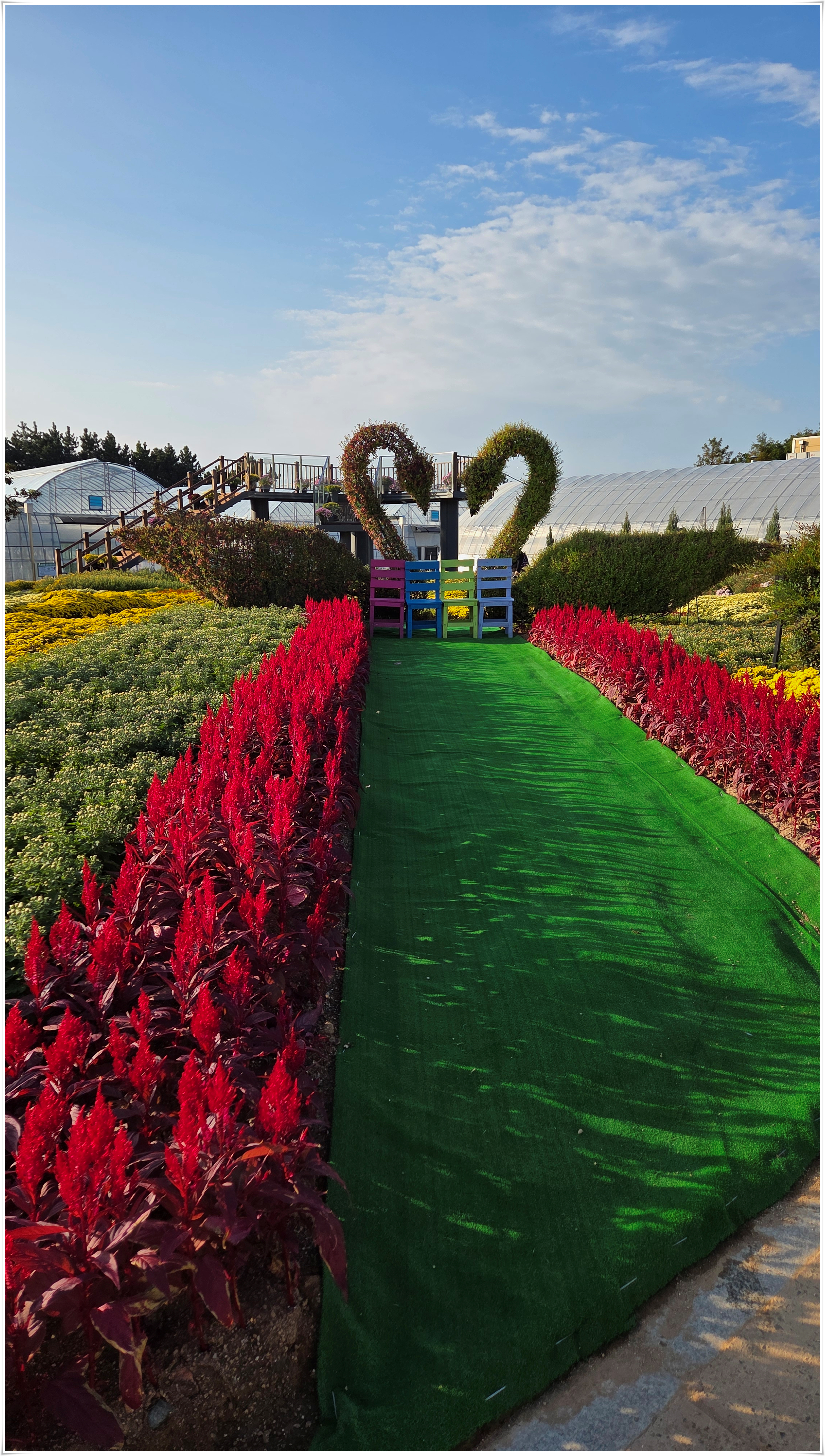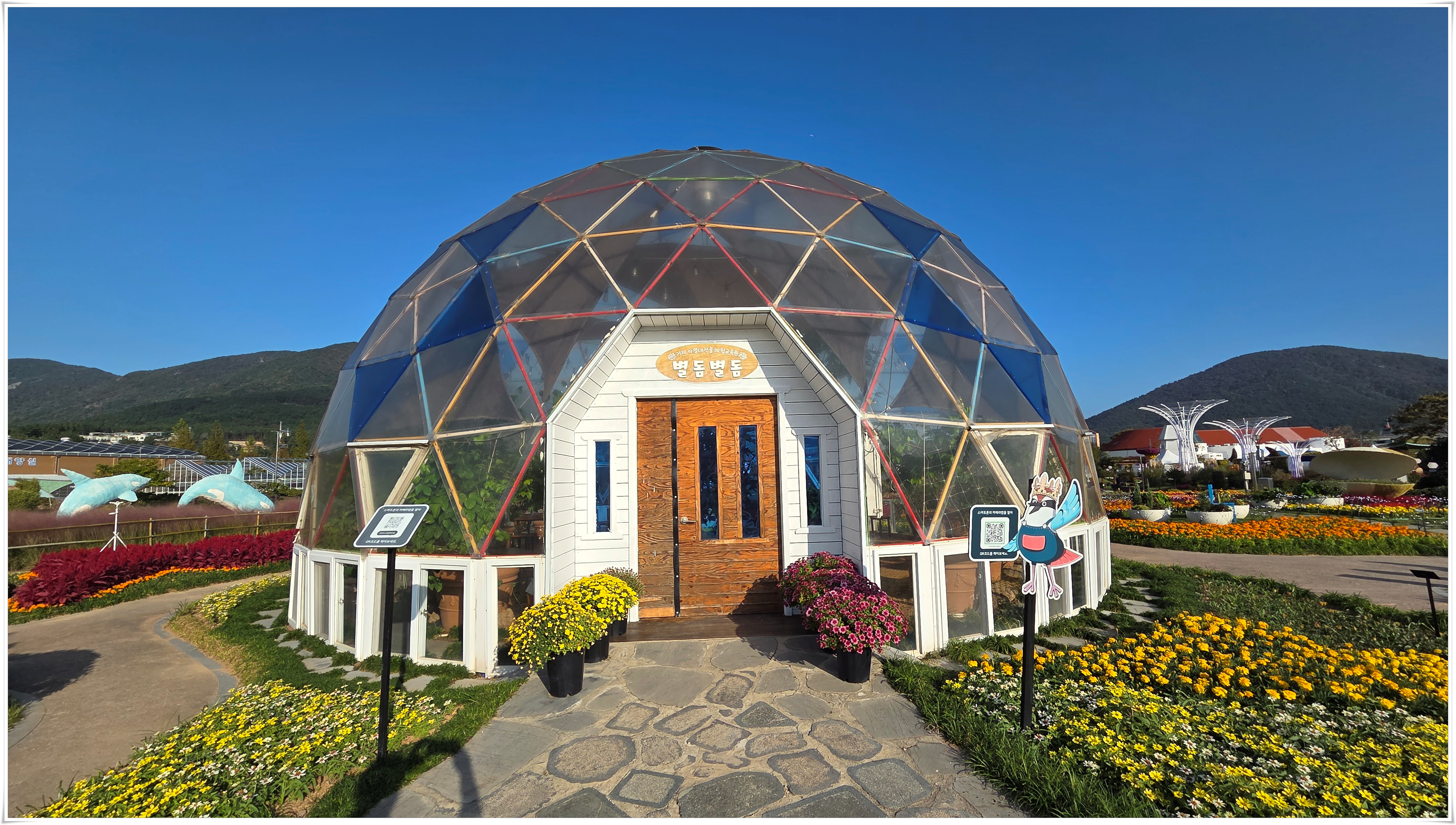 가을꽃 향연 국화와 코스모스 핑크물리등 가을을 물들이는 형형 색색의 꽃들로 축제장을 가득 채우고 있었다. 밤외 되면 조형물 위로 불빛이 내리고 프로젝션 맵핑이 만들어내는 환상적인 야경과 낮과는 전혀 다른 모습을 볼 수 있다고 한다.