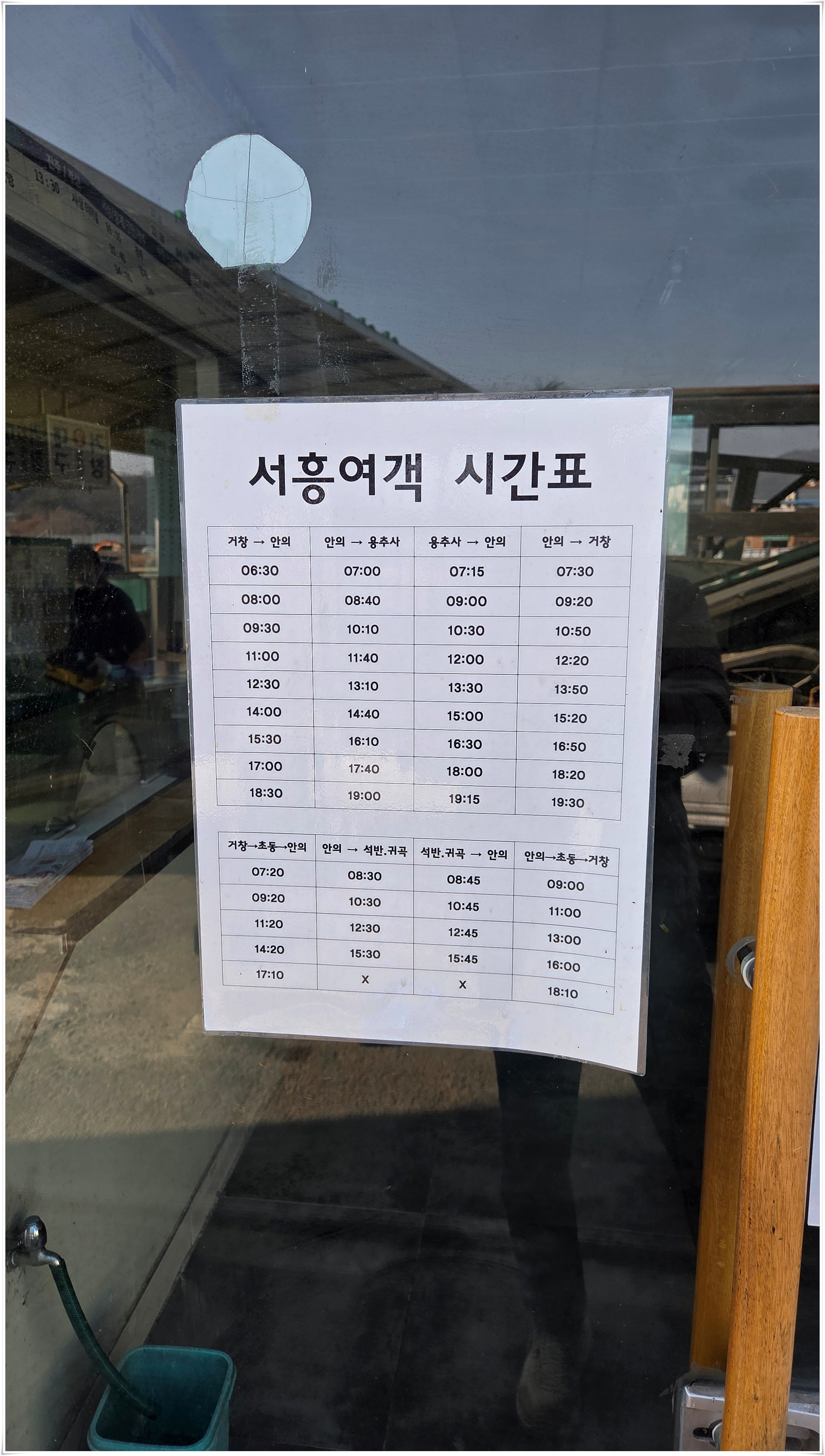▲안의-서하-서상행 버스 시간 첫차6시25분 막차19시 30분