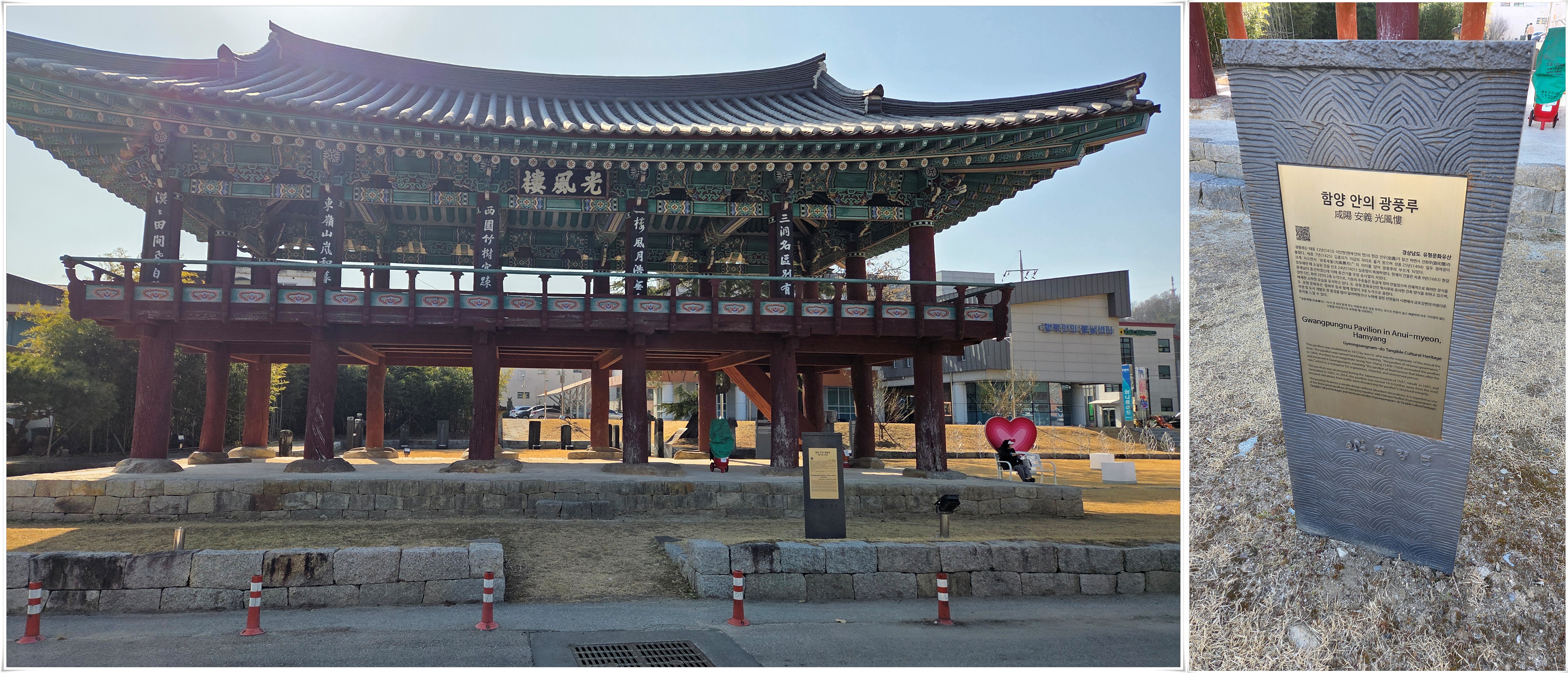 이 누각은 1412년(태종 12) 이안현감(利安縣監) 전우(全遇)가 지은 것으로서 그 당시에는 선화루(宣化樓)라 하였다고 한다. 그 뒤 1425년(세종 7)에 김홍의(金洪毅)가 현위치로 옮겨 세웠으며, 1494년(성종 25)에 현감이었던 정여창(鄭汝昌)이 중수하여 이름도 광풍루로 고쳐 불렀다.