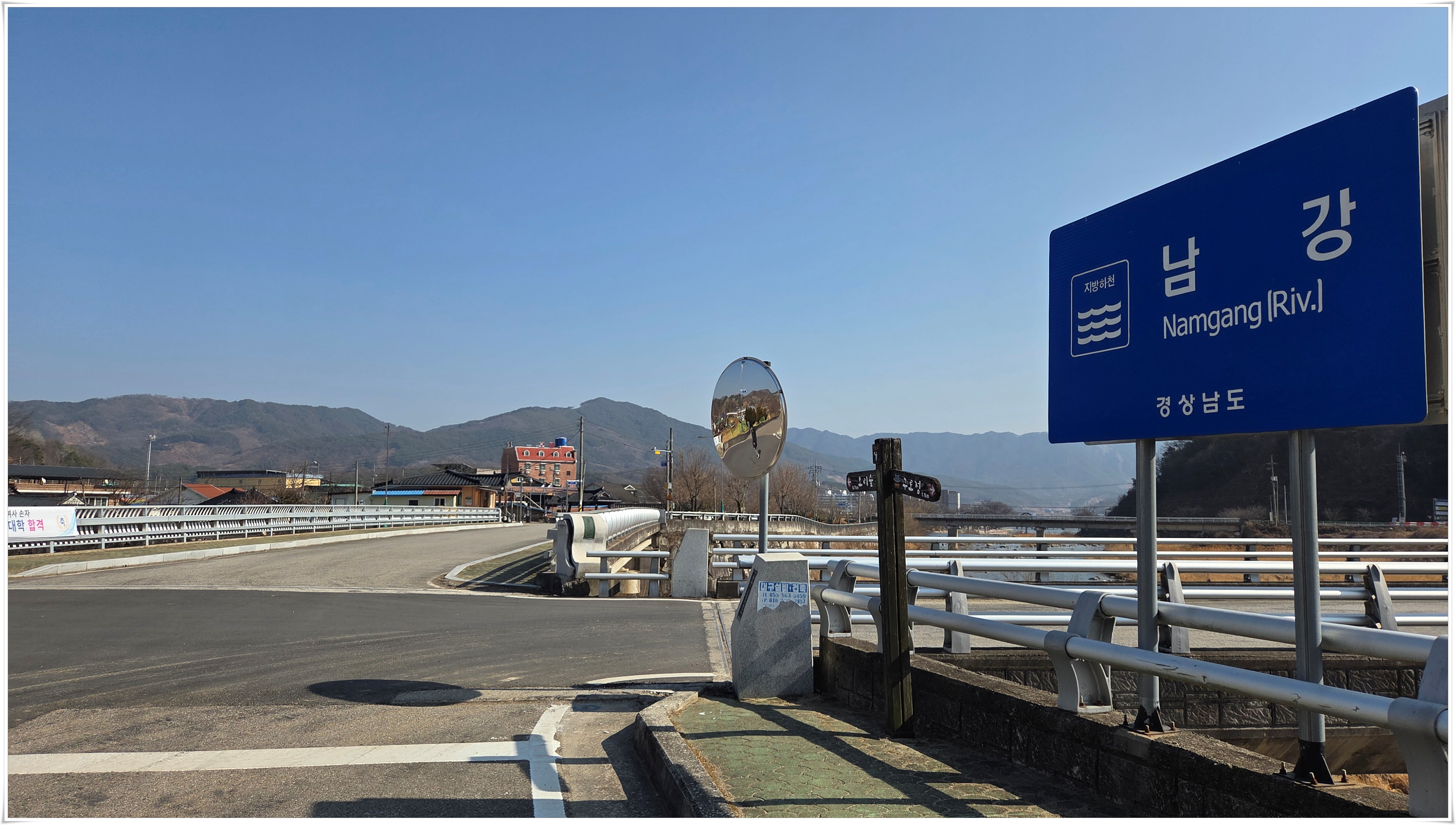 농로와 시멘트 길을 지나 ‘호성마을’ 앞 산책로를 걷는다. ‘람천정’ 지나 ‘화림계곡 탐방 안내판‘을 만나면 왼쪽으로 꺾는다. 계곡 위 돌다리를 건넌 다음 큰길에서 오른쪽으로 방향을 잡고 남강천을 따라 길게 뻗은 둑길을 걷는다. 둑길이 끝나는 지점에선 조심조심 도로를 건넌 다음 ‘서하교’를 건너 왼쪽으로 굽어지며 이어져 있는 구(舊)도로로 들어선다. 큰길을 다시 만나 잠시만 더 걸으면 왼쪽에 황토색 계단이 보인다. 계단을 내려가 오른쪽으로, 풀 많은 둑길을 걸으면 농월정 이정표가 나온다.