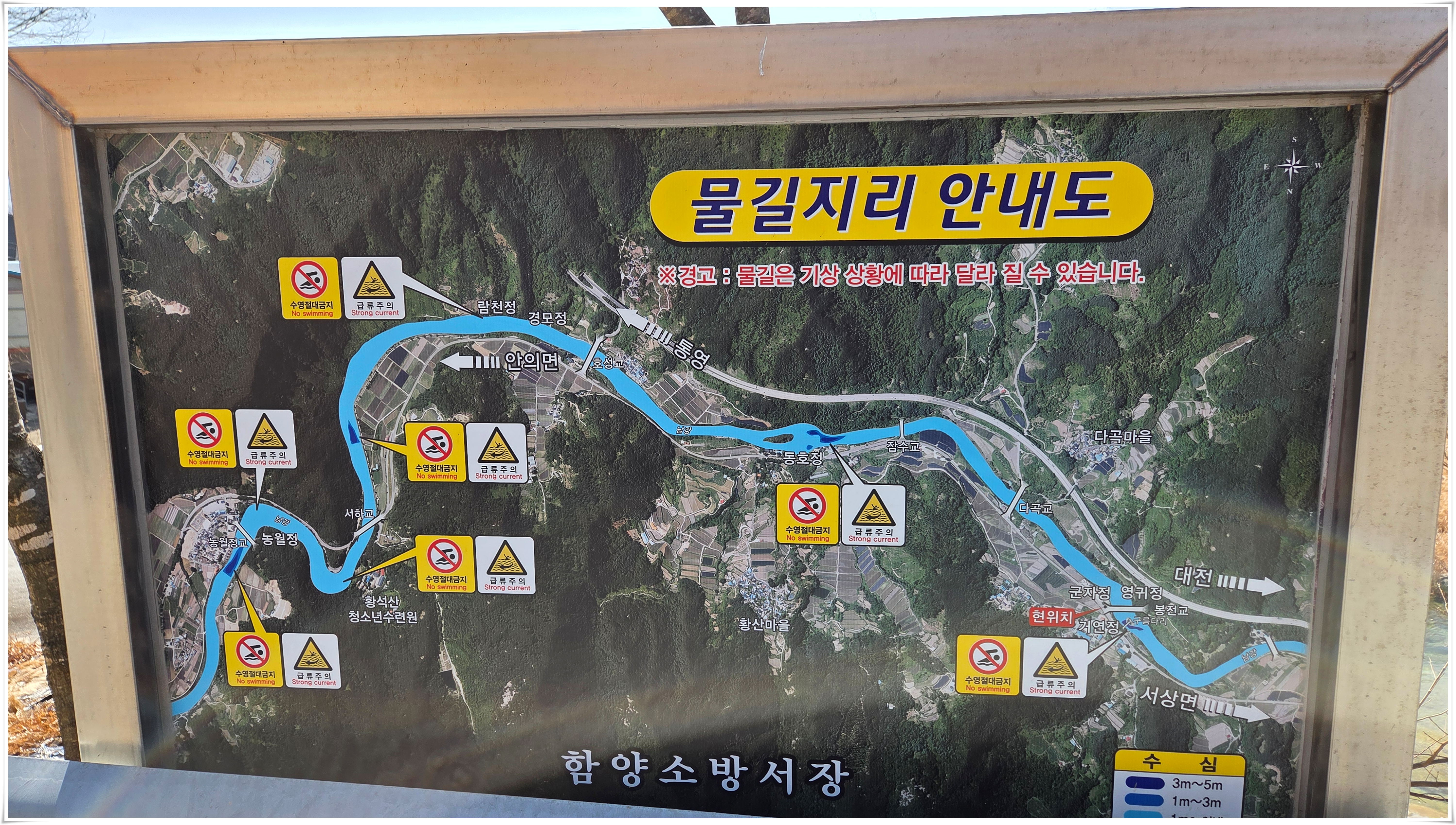 안의버스터미널 강변에 주차를 하고 안의버스터미널에서 서상행 버스를(요금1,000원) 타고 봉전정류장에 하차후 함양선비문화탐방길 1구간,2구간을 탐방을 하였다.