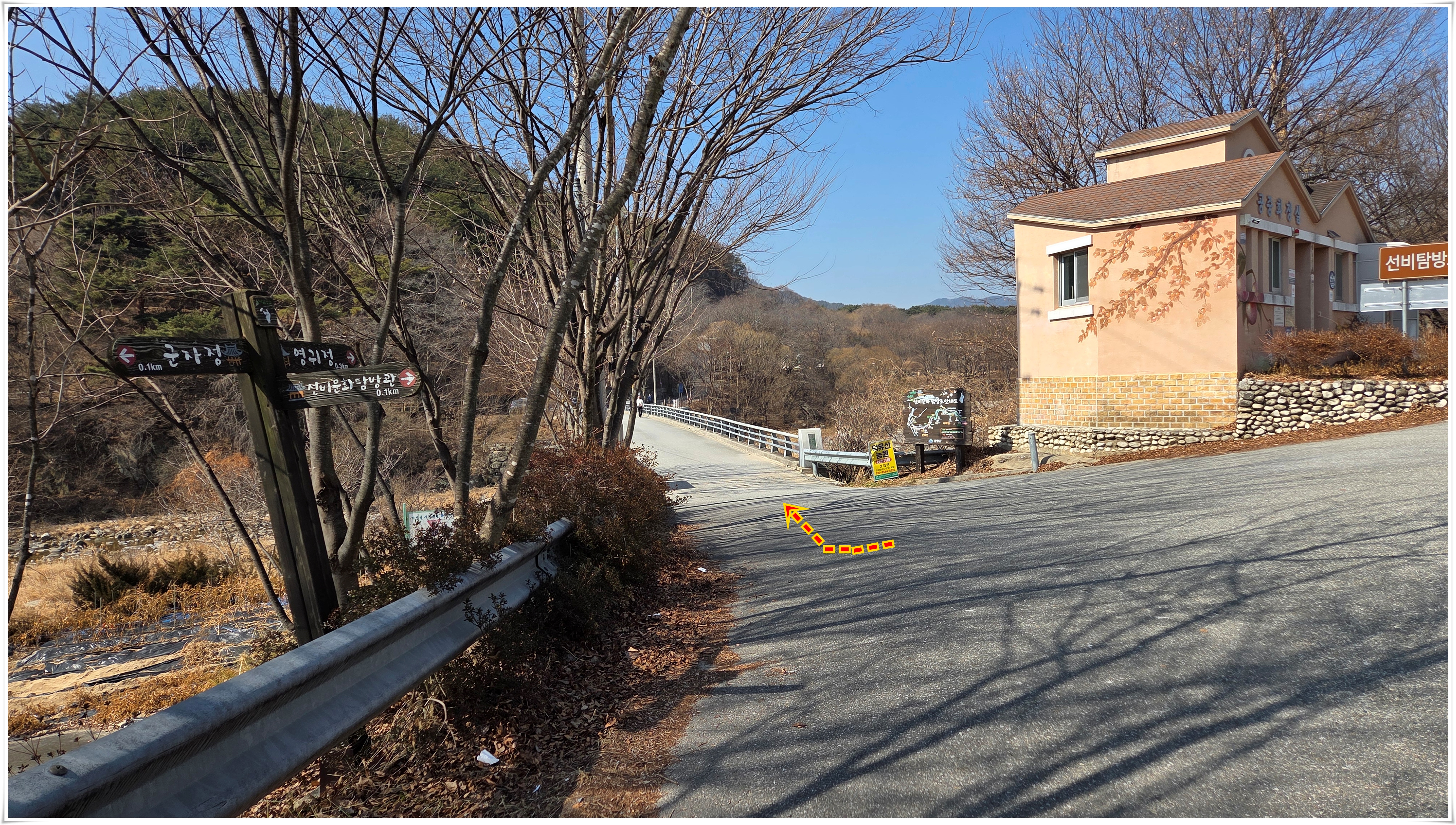 ▲이길 끝지점에서 도로 방향으로 올라가서 다리를 건너서 오른쪽 방향으로 진행