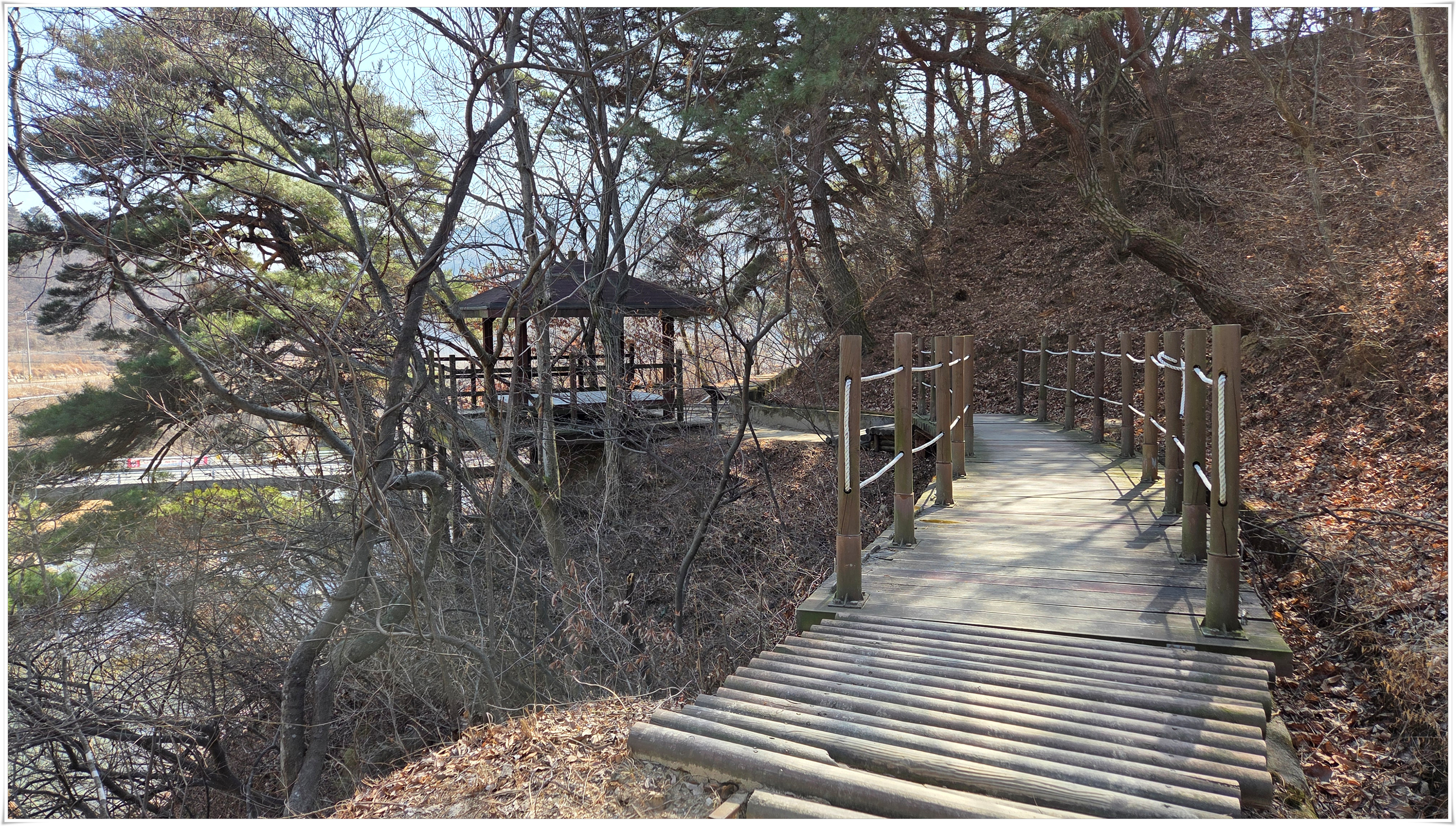 ▲공중화장실에서 다리을 건너 진행, 화장실 옆 아래쪽에 군자정 있음